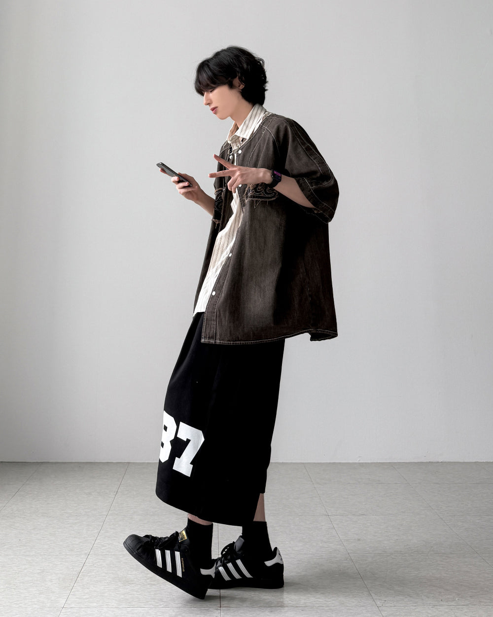 -ONE SIZE (ウエスト(ゴム)72-112 ヒップ- 股上45 股下22 もも周り90 裾周り74 総丈67)