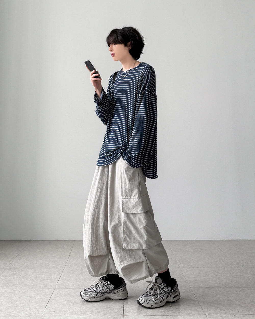 -ONE SIZE (ウエスト(ゴム)64-104 ヒップ- 股上39 股下33 もも周り82 裾周り72 総丈72)