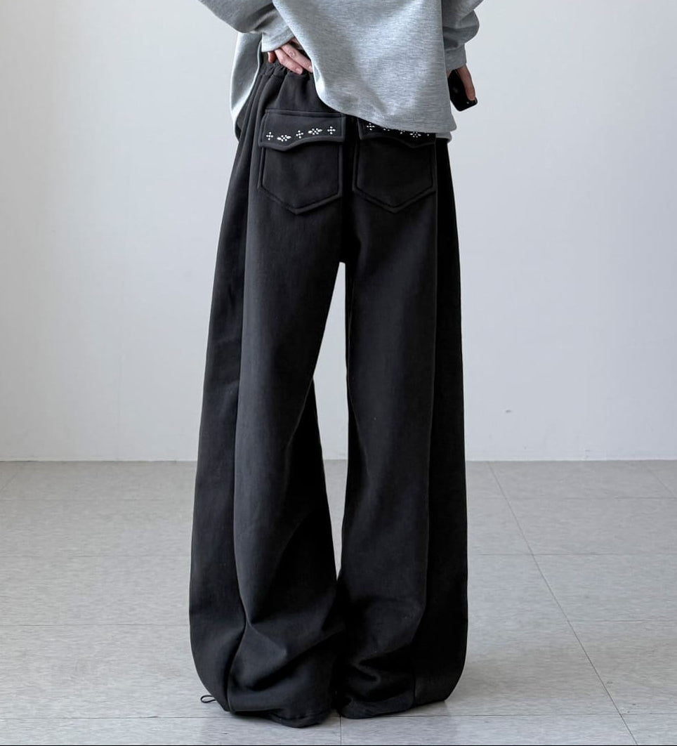 -ONE SIZE (ウエスト(ゴム)66-116 ヒップ- 股上40 股下68 もも周り76 裾周り62 総丈108)