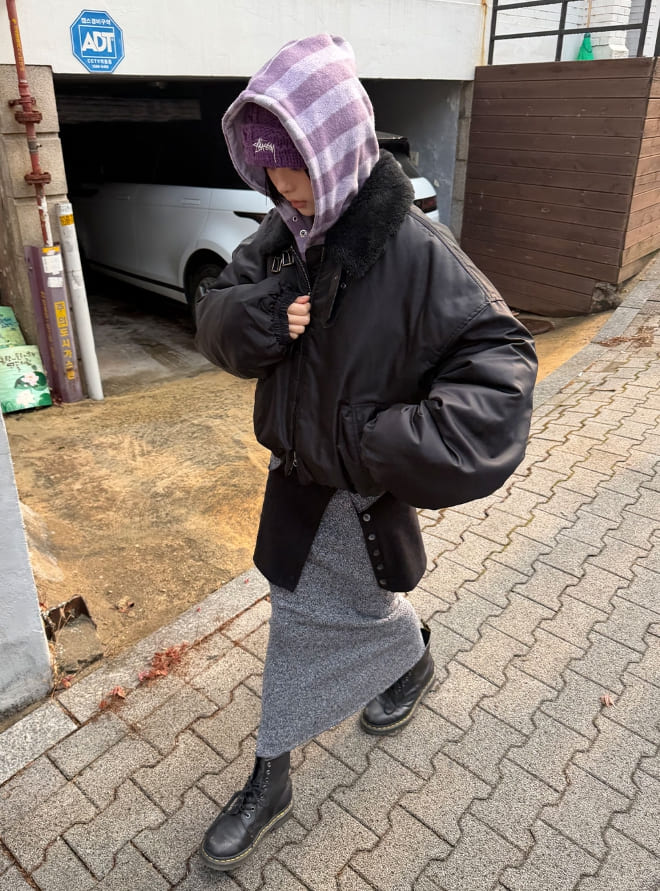 (6oz) FUR COLLAR BUCKLE PADDED JUMPER