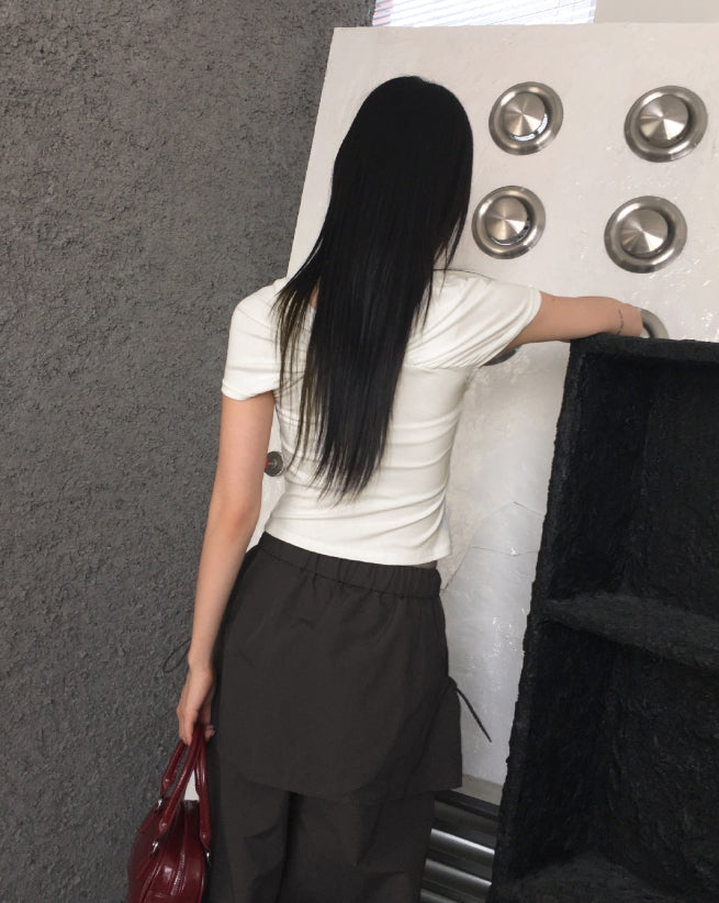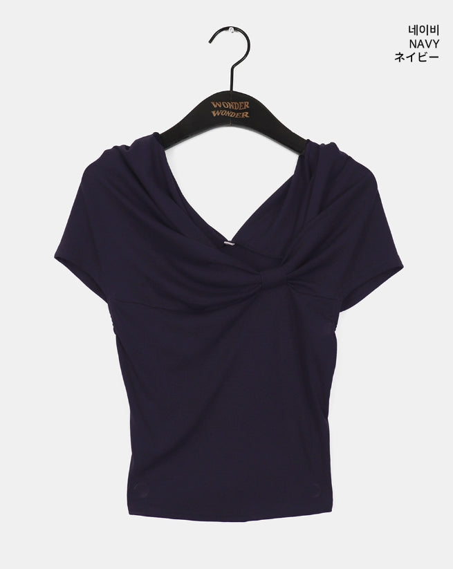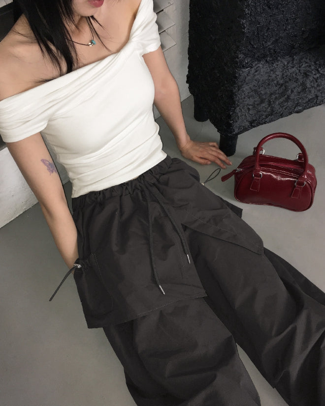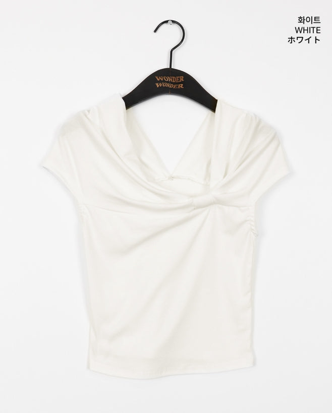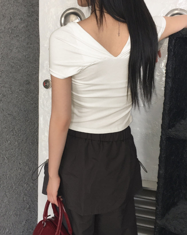 Aconi Ribbon Off-Shoulder Cropped T-Shirt