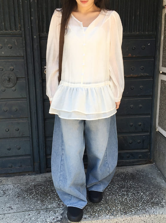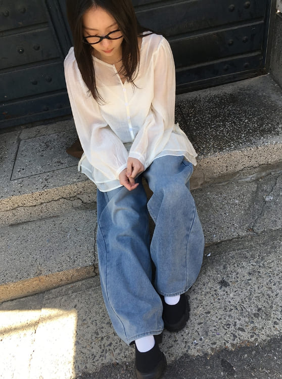-159cm / 44size / 22(xs) / 230mm / Light Blue Denim / Basic Lサイズ着用