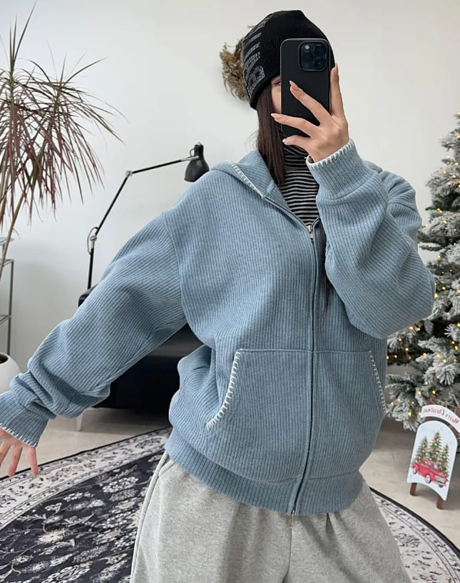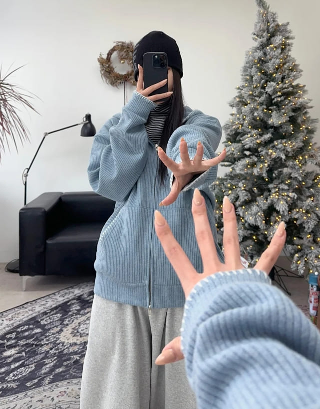 Any Stitch Knit Hood Zip Up