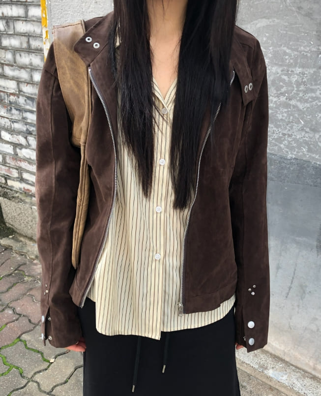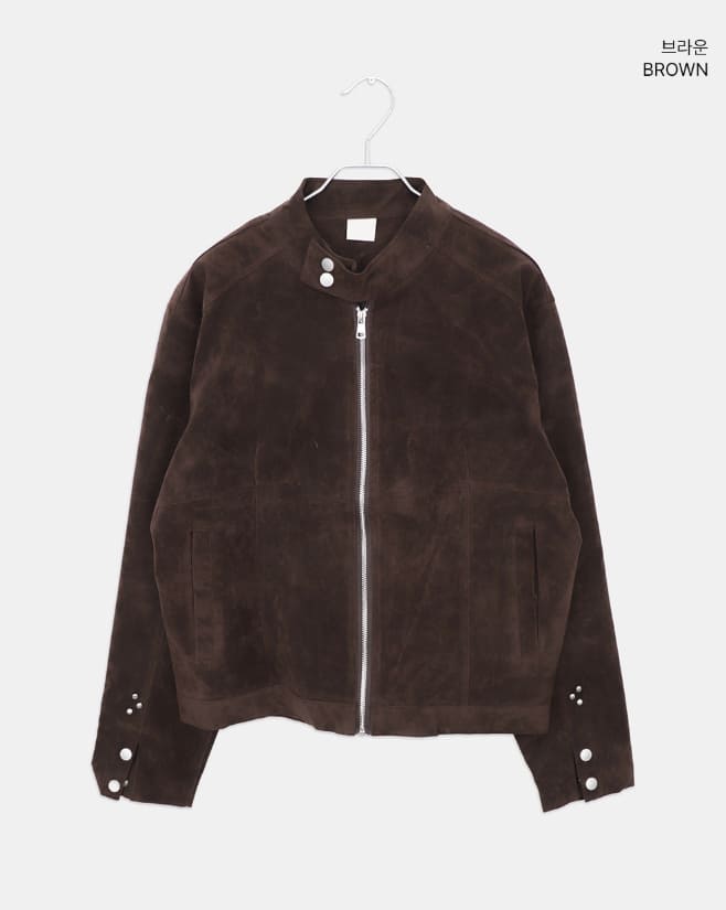 Artit Suede High Neck Studded Cut Long Sleeve Jacket