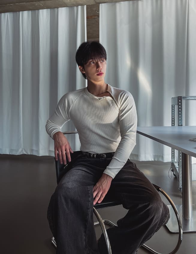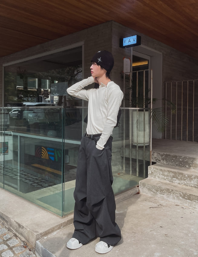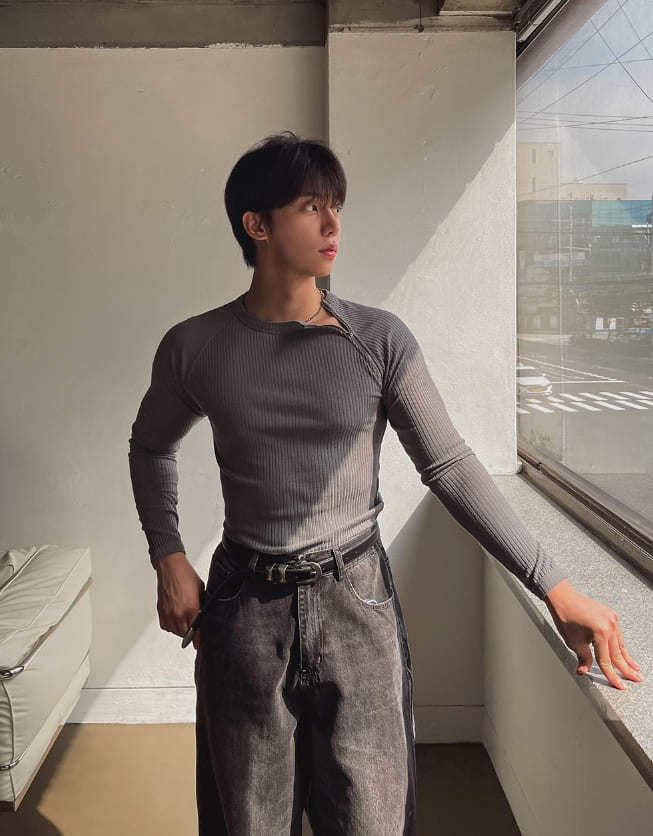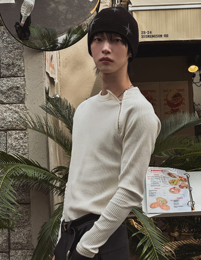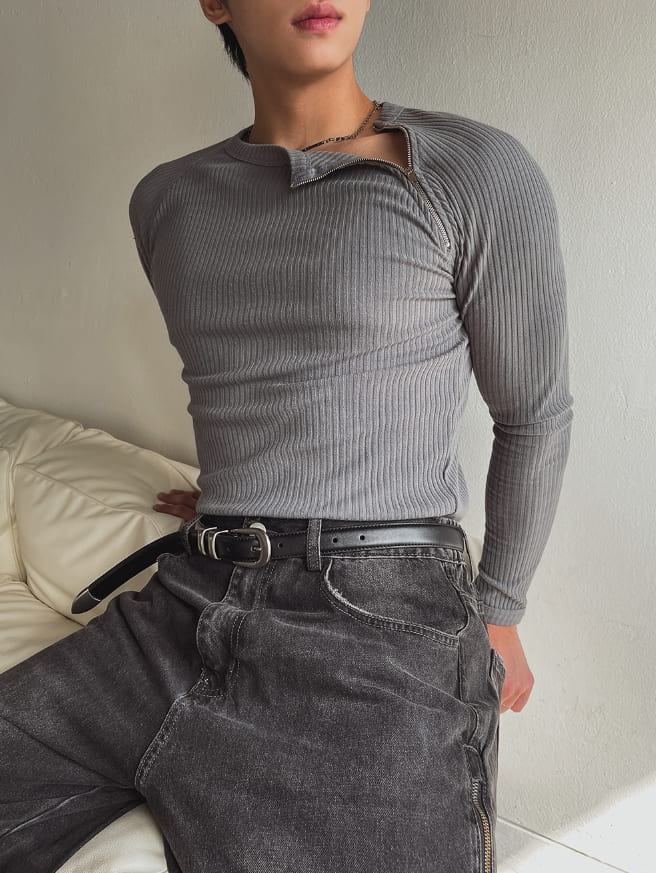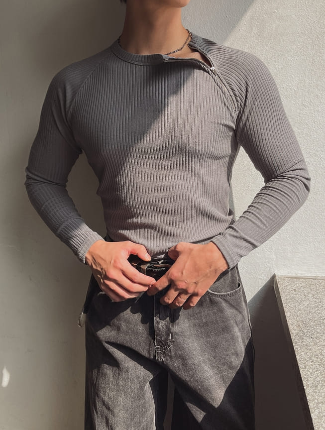 アスジッパーリップマッスルフィット長袖Tシャツ