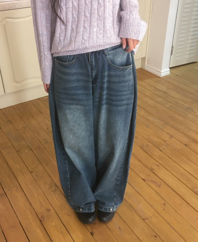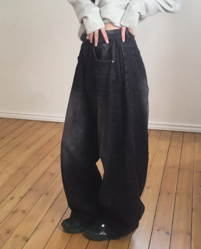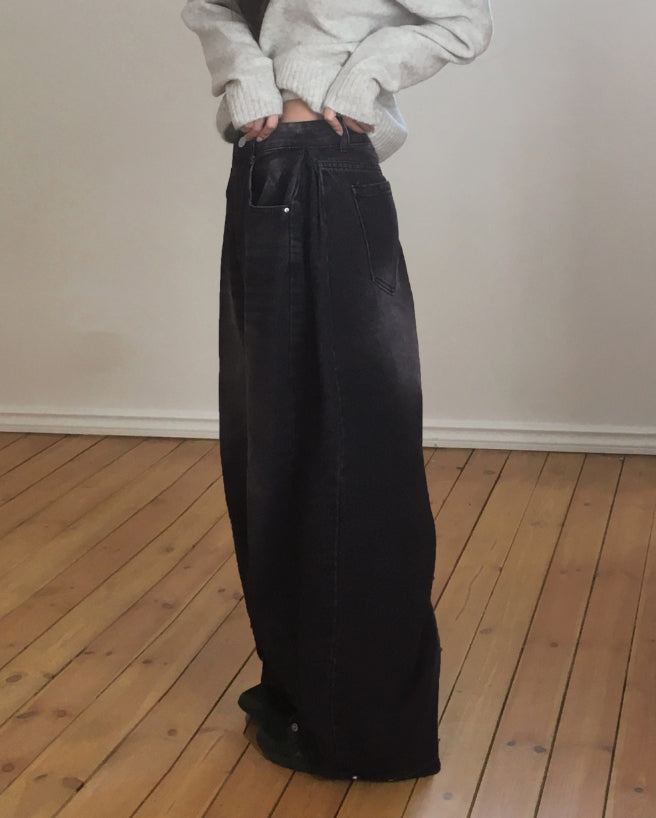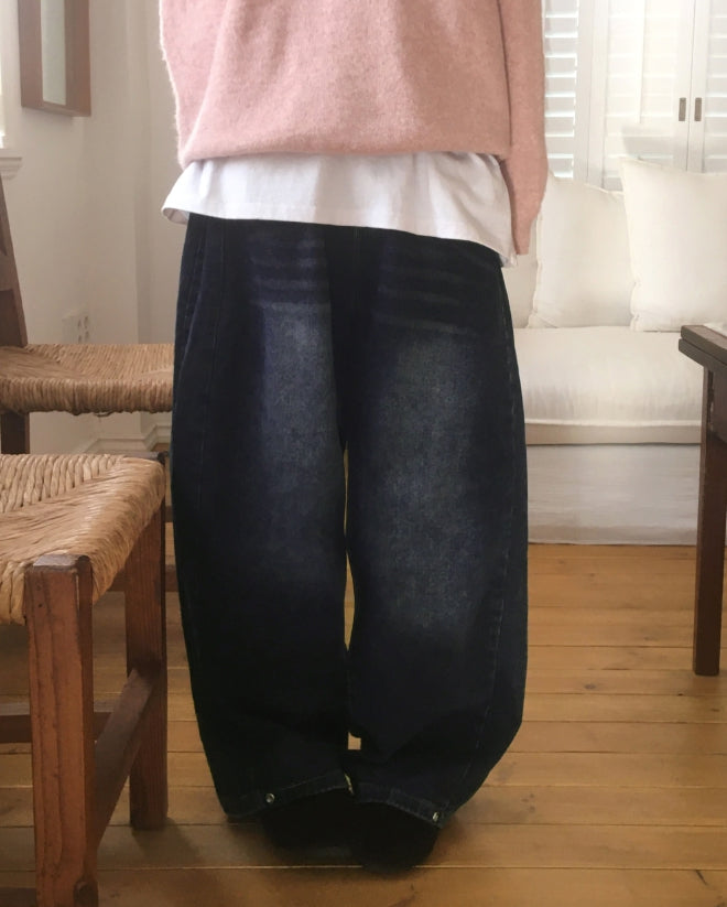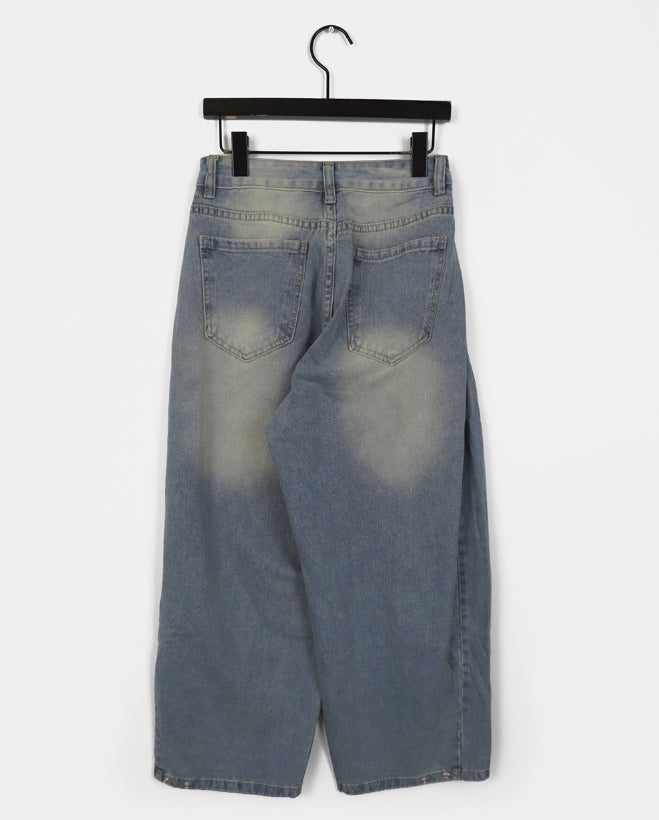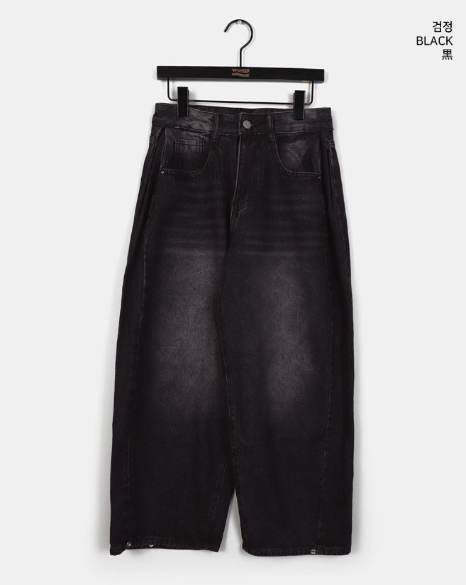 アーシャンサイドピンタックスナップワイドデニムパンツ