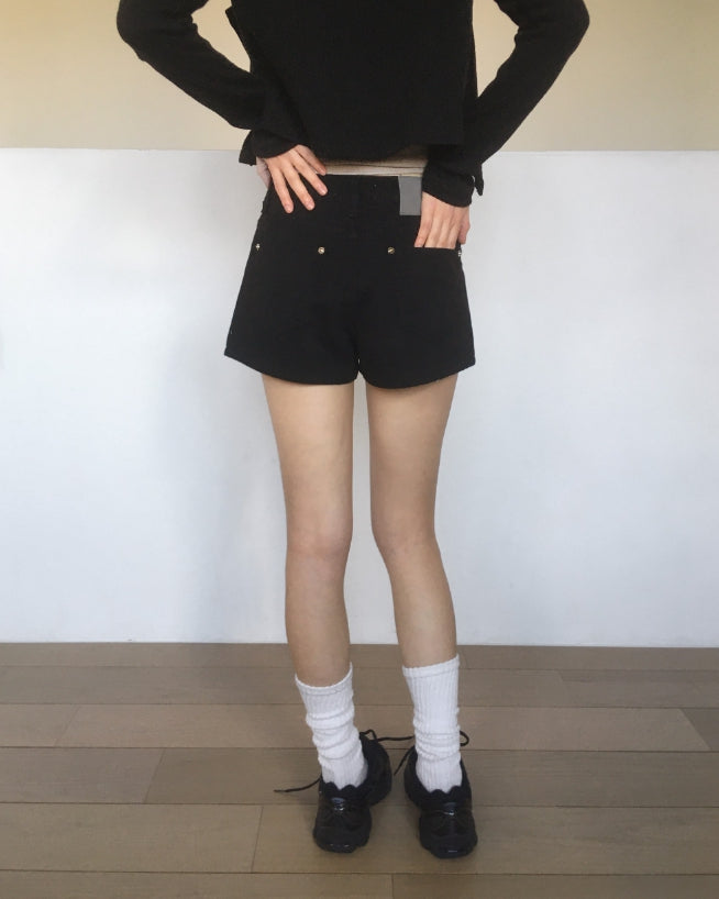 -M (ウエスト70 ヒップ99 股上24.5 股下3.5 もも周り63 裾周り60 総丈28)