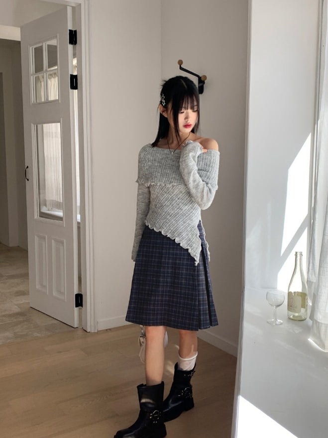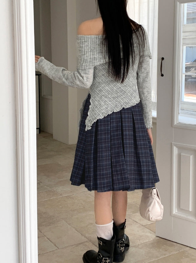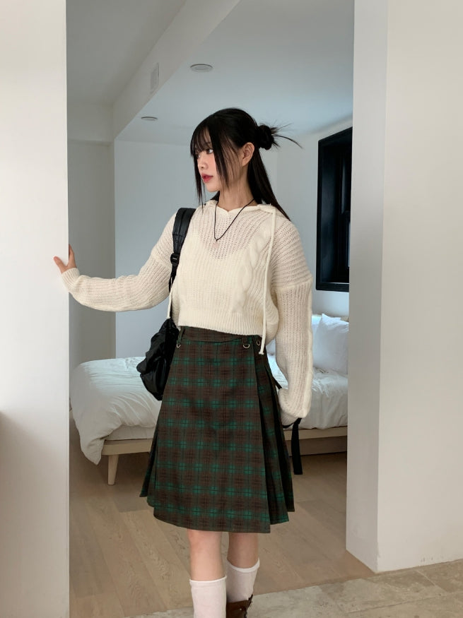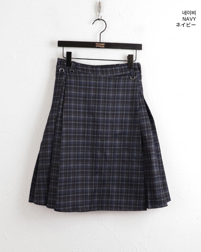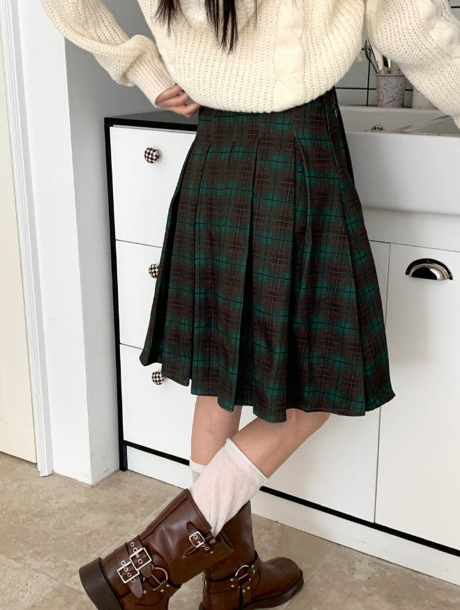 アヴェットレトロチェックプリーツミディキュロットスカート