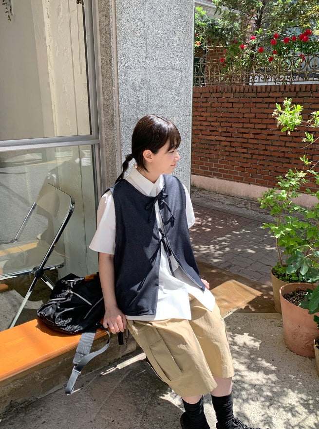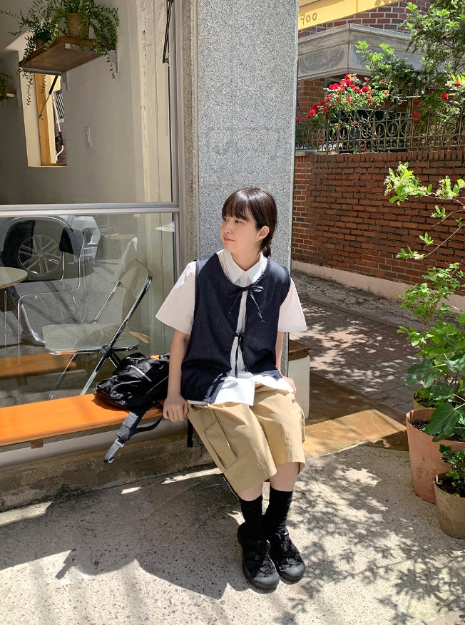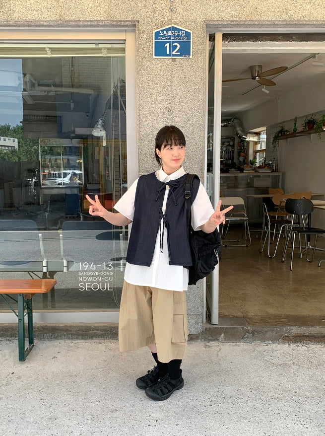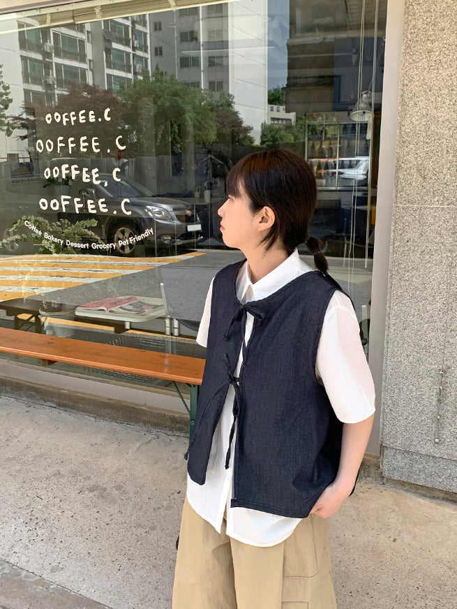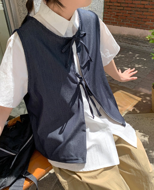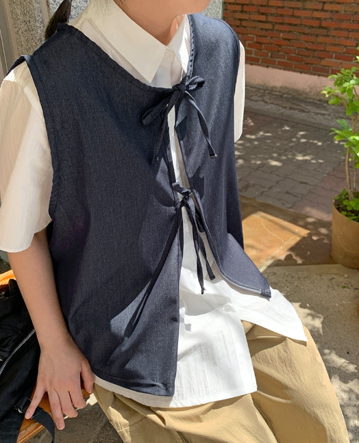 [BAONHAUS] Hanio Denim Ribbon Vest