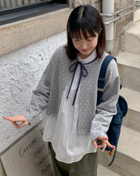 [BAONHAUS] Karoi Ribbon Dot Cotton Cardigan
