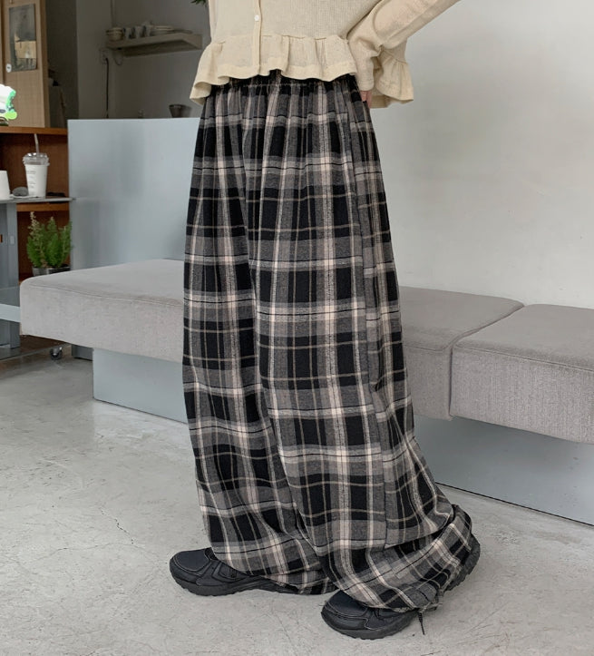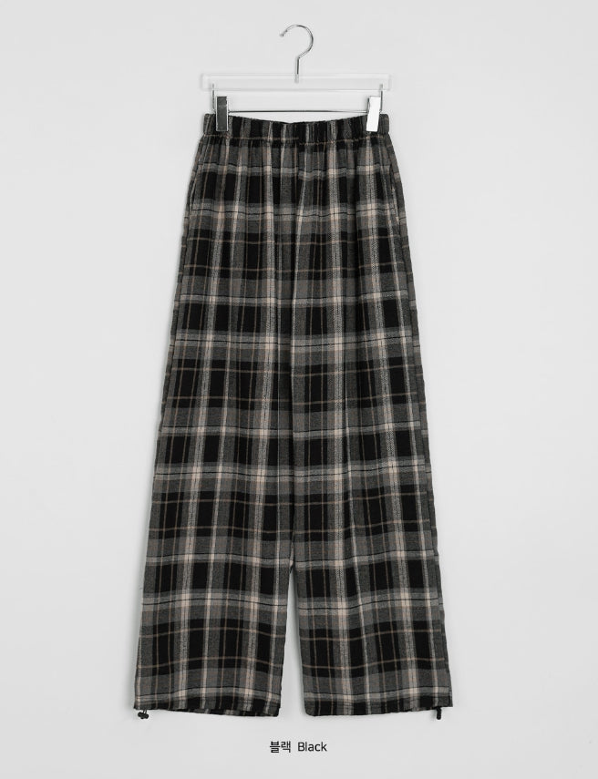 [BAONHAUS] Kenidi Check Banding Wide Pants