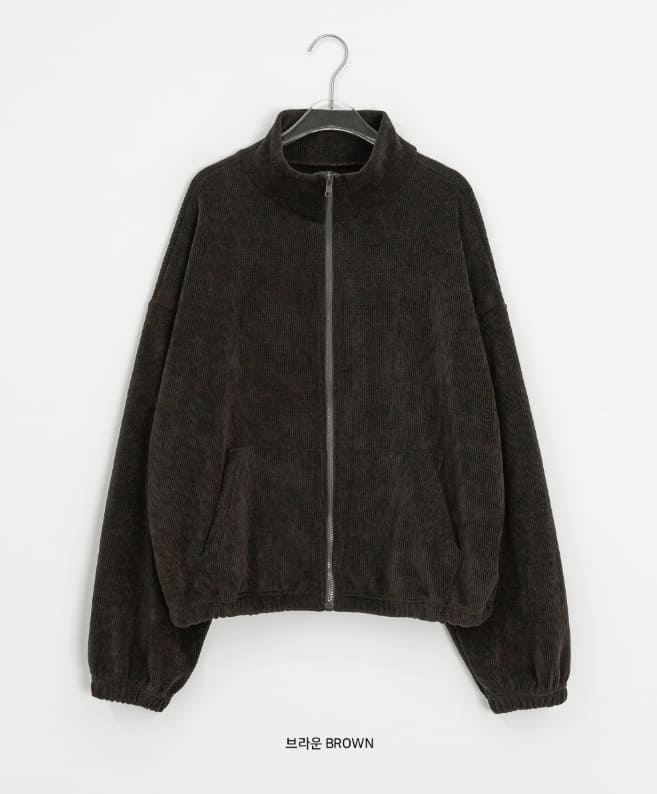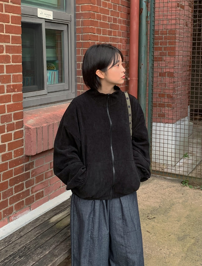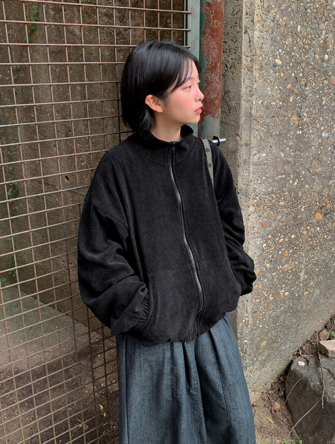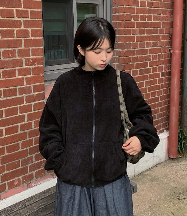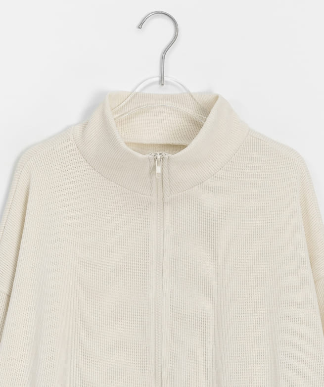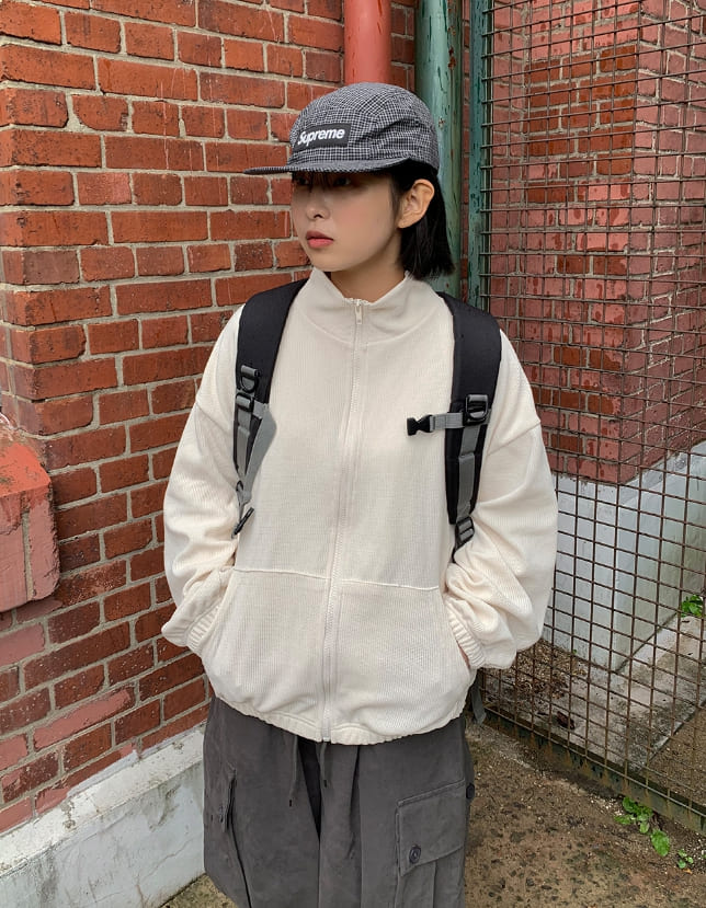 [BAONHAUS] Mervenkey Waffle Corduroy Collar Zip-Up Jumper