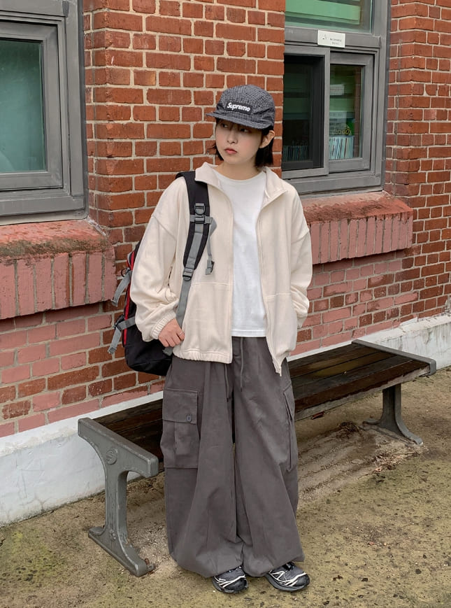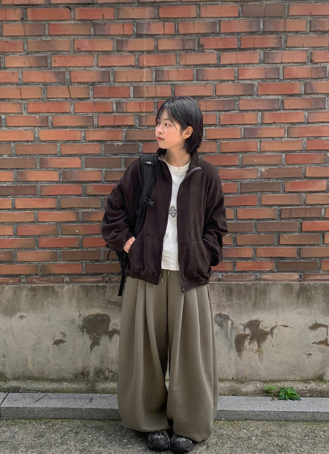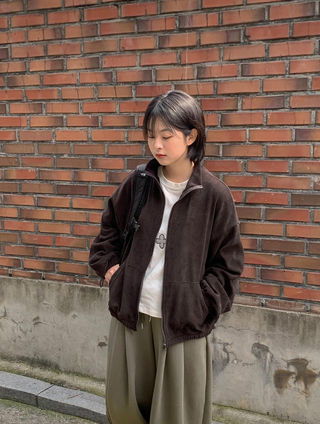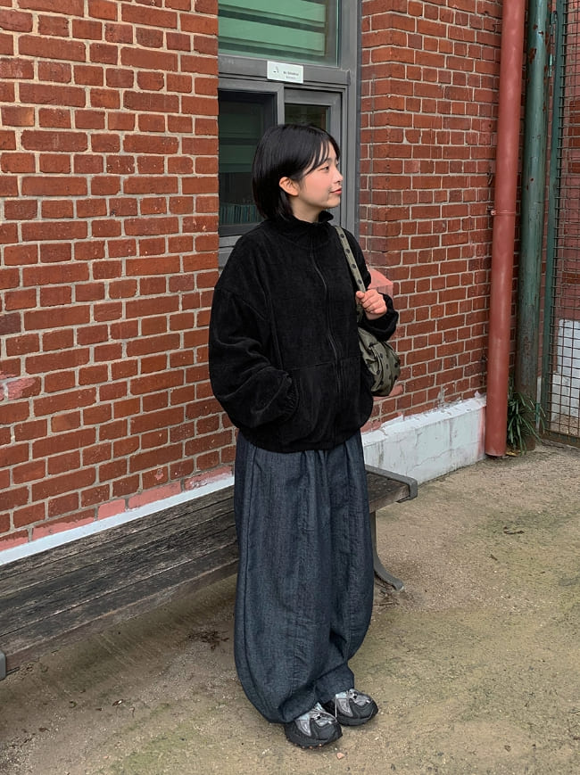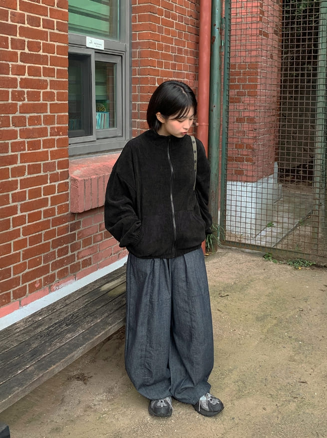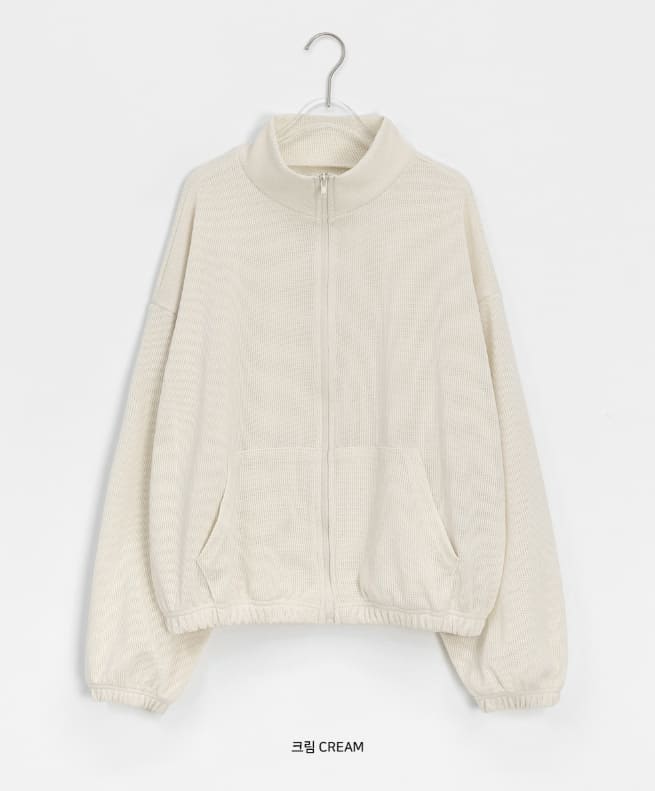 [BAONHAUS] Mervenkey Waffle Corduroy Collar Zip-Up Jumper