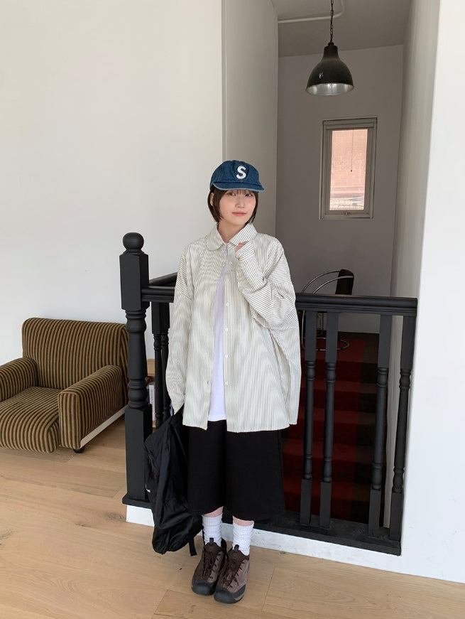 [BAONHAUS] Pipirin Over Stripe Shirt