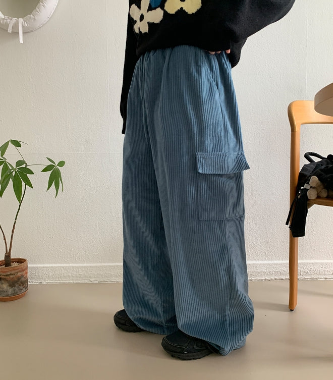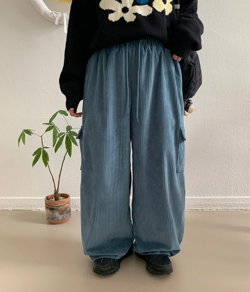 [BAONHAUS] Pomp corduroy cargo banding pants