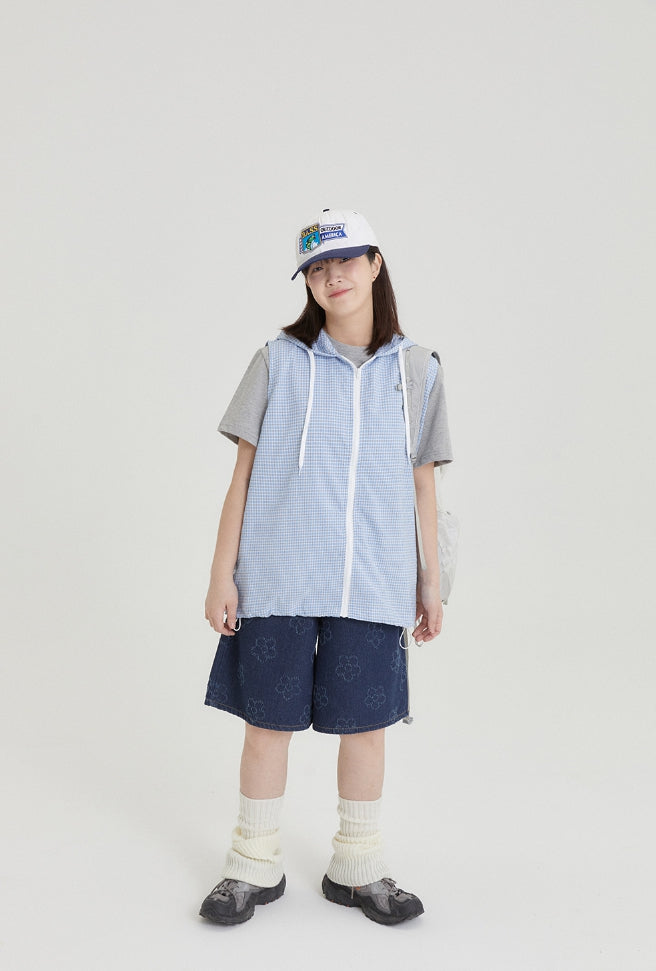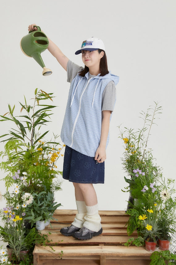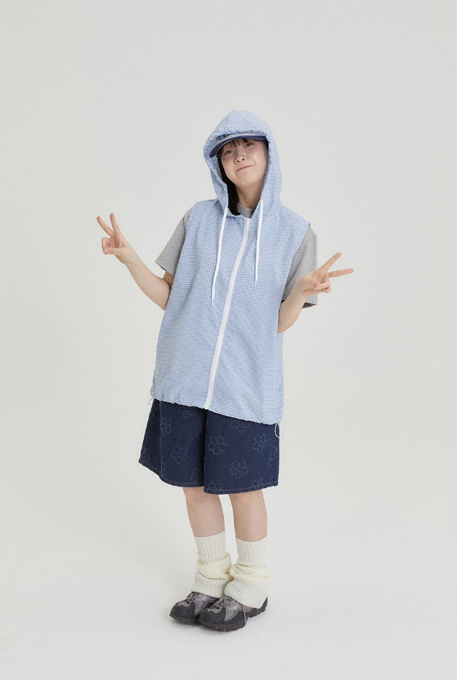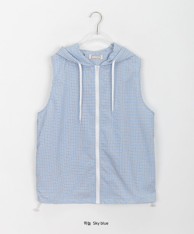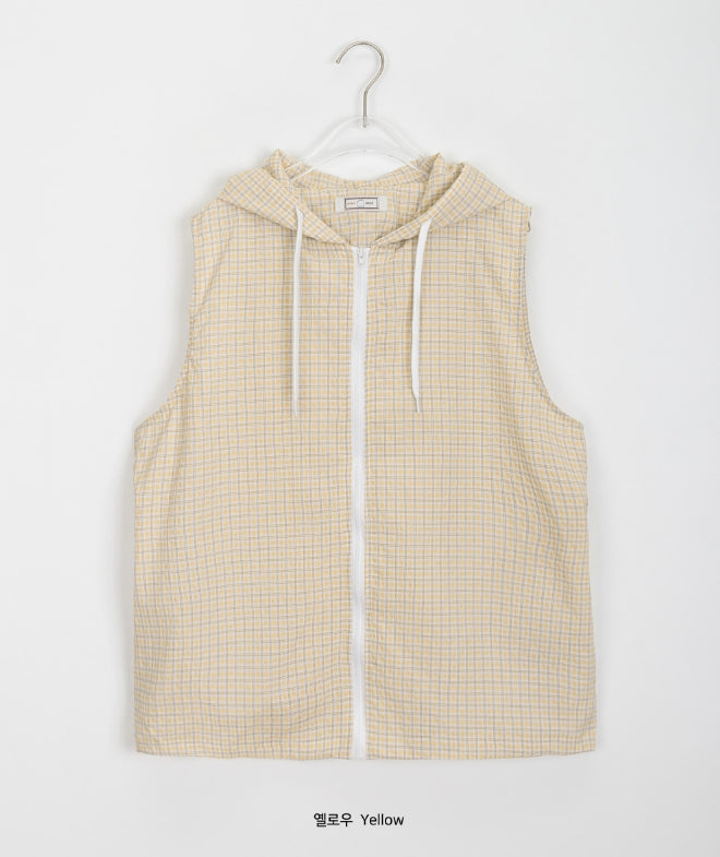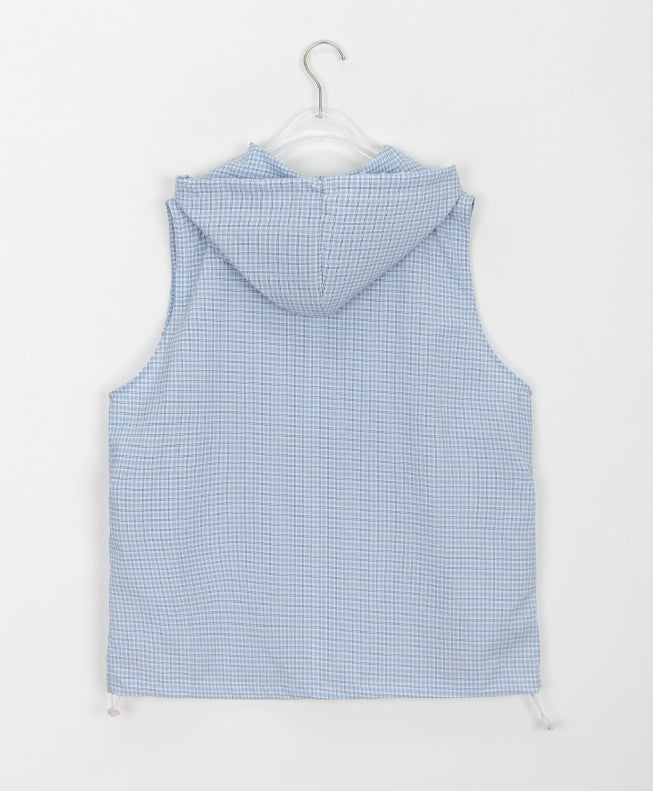 [BAONHAUS] Prive Check Zip-Up Hood Vest
