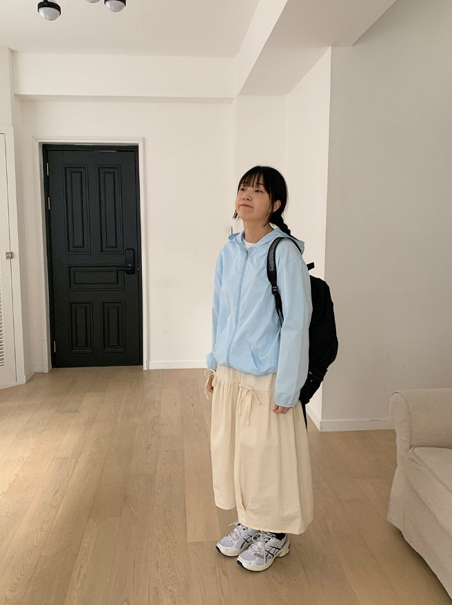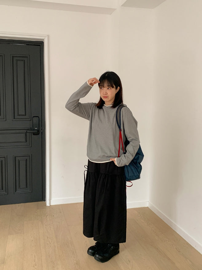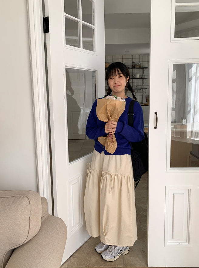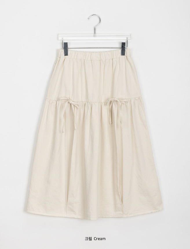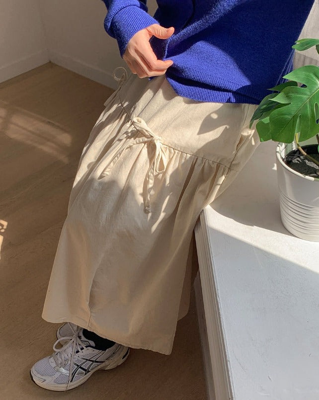 [BAONHAUS] Relia Shirring Ribbon Banding Long Skirt