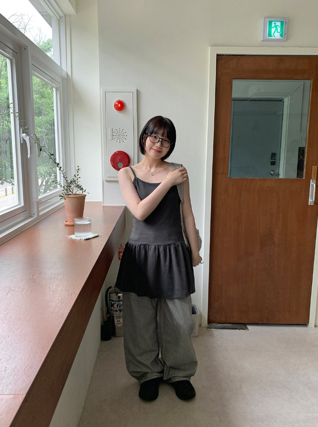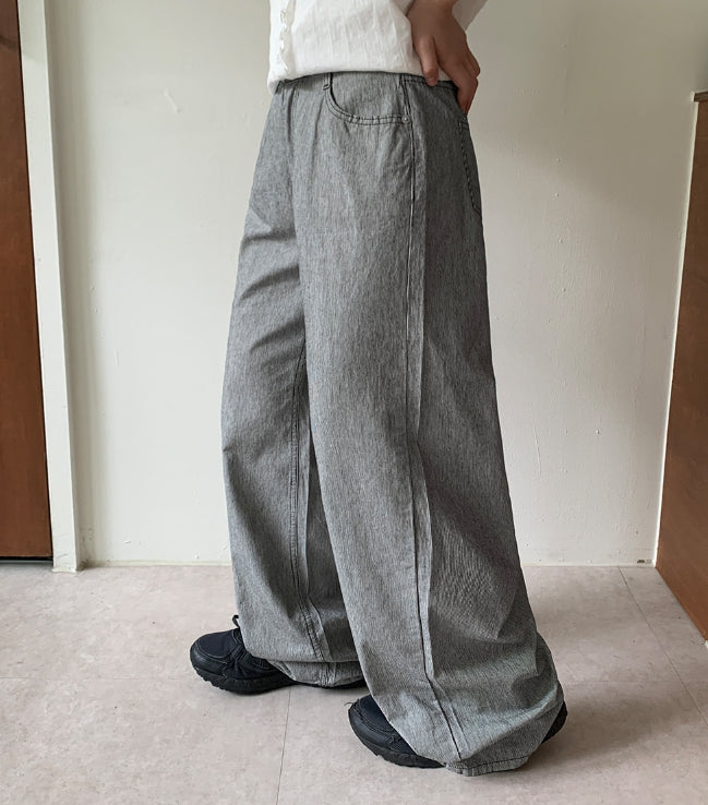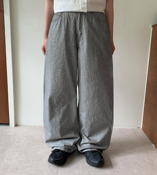 ベイタストライプワイドコットンパンツ