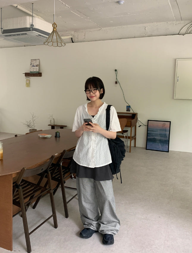 Beita Stripe Wide Cotton Pants