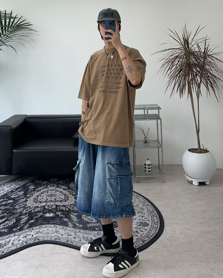 -ONE SIZE (ウエスト(ゴム)68-104 ヒップ140 股上32 股下36 もも周り82 裾周り78 総丈68)