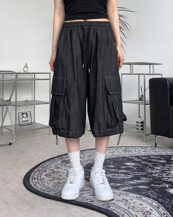 -ONE SIZE (ウエスト(ゴム)68-112 ヒップ144 股上33 股下33 もも周り80 裾周り(ストリング)80 総丈66)