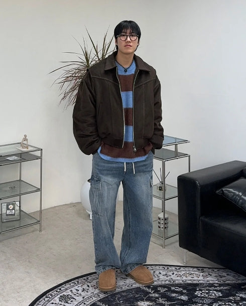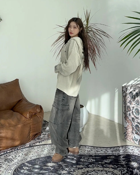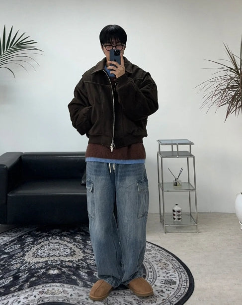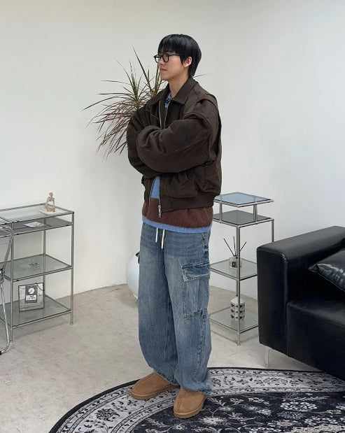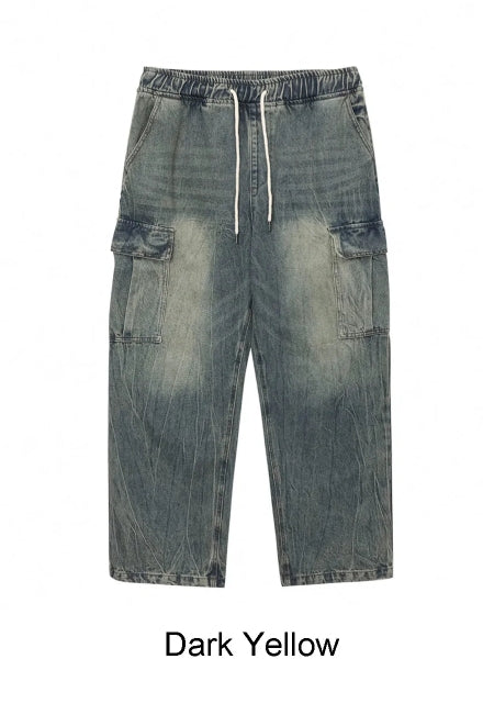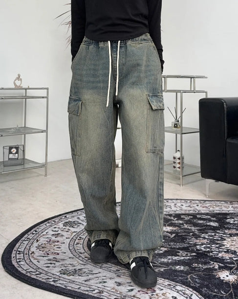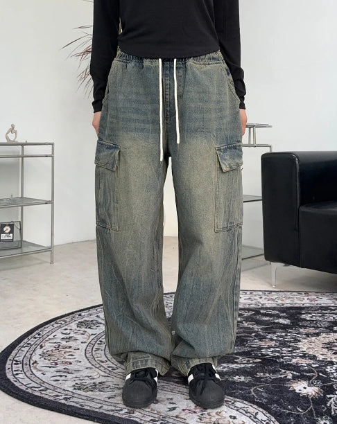 ベオスシワウォッシュ加工バンディングデニムパンツ