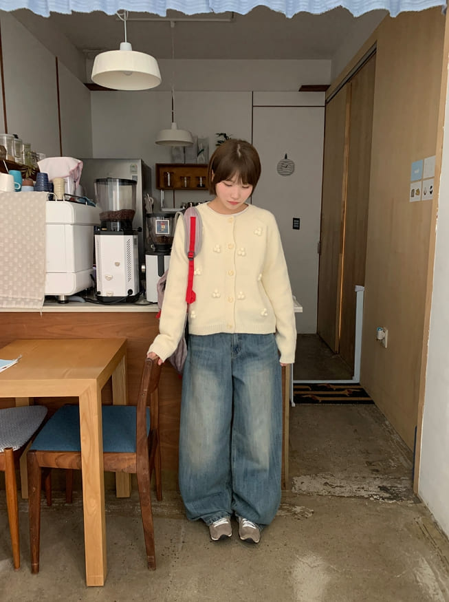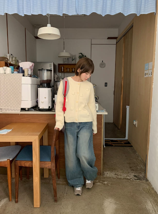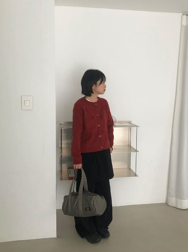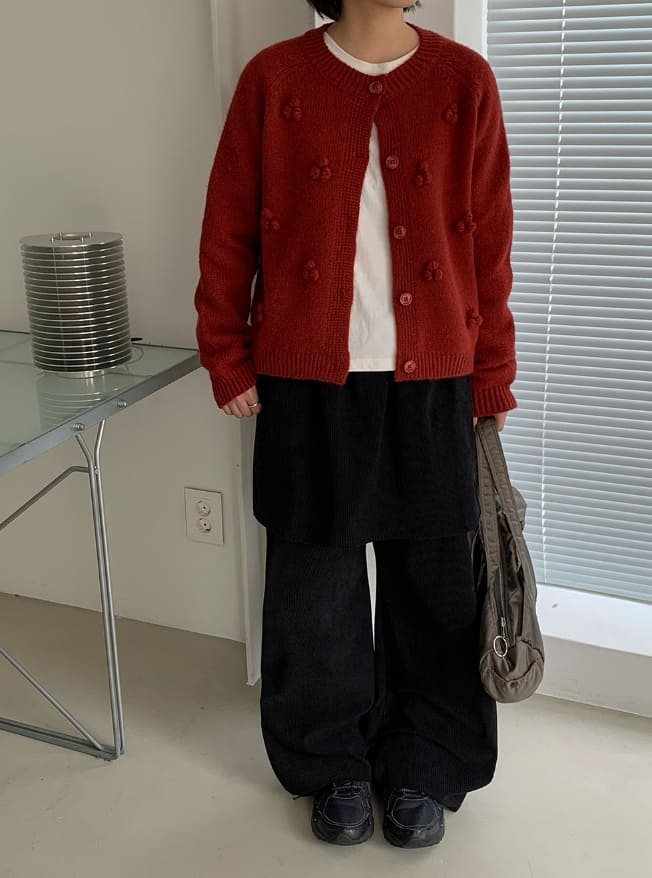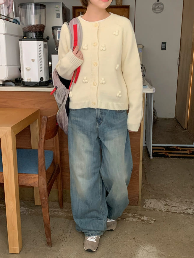 ベショスポムポムラウンドニットカーディガン