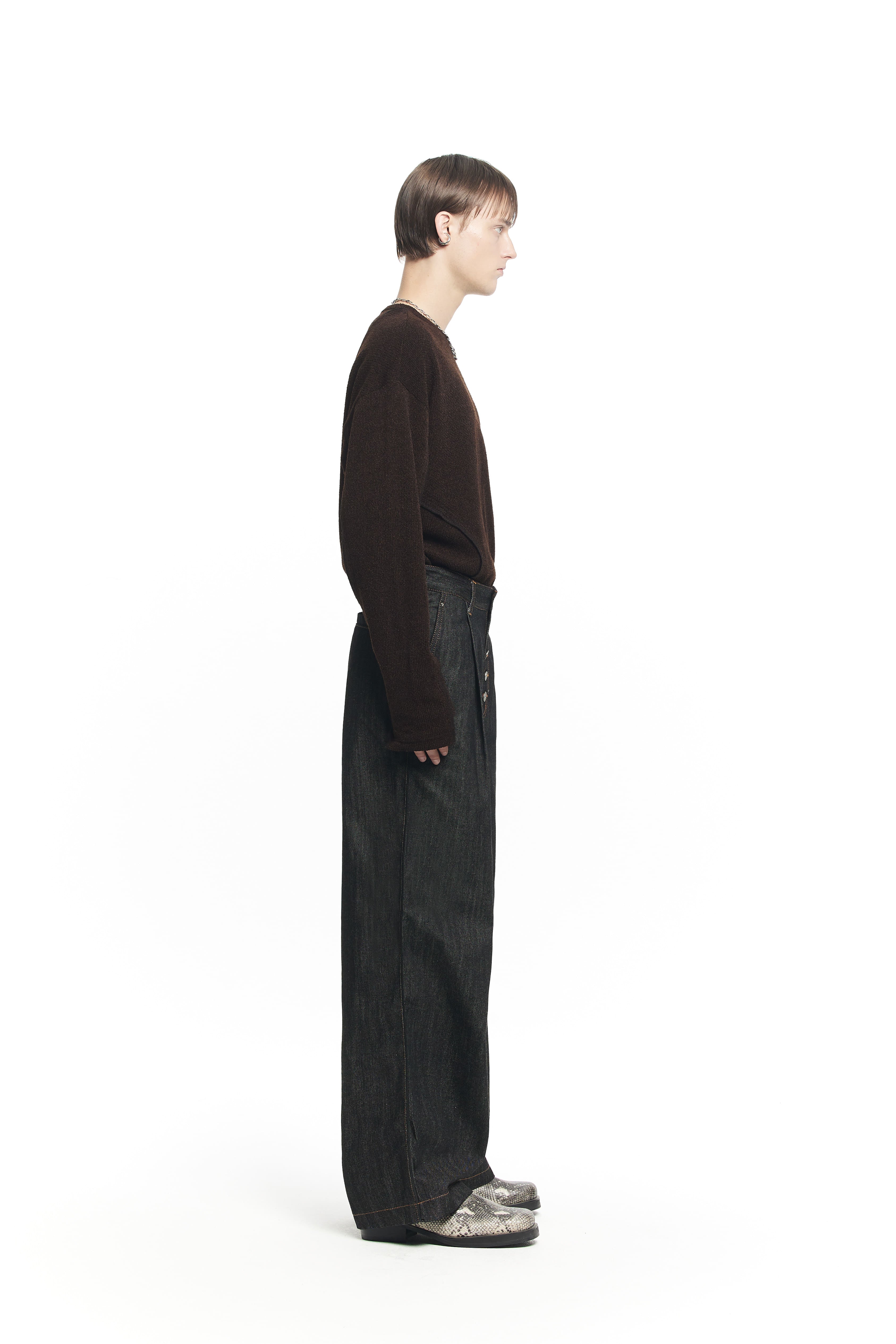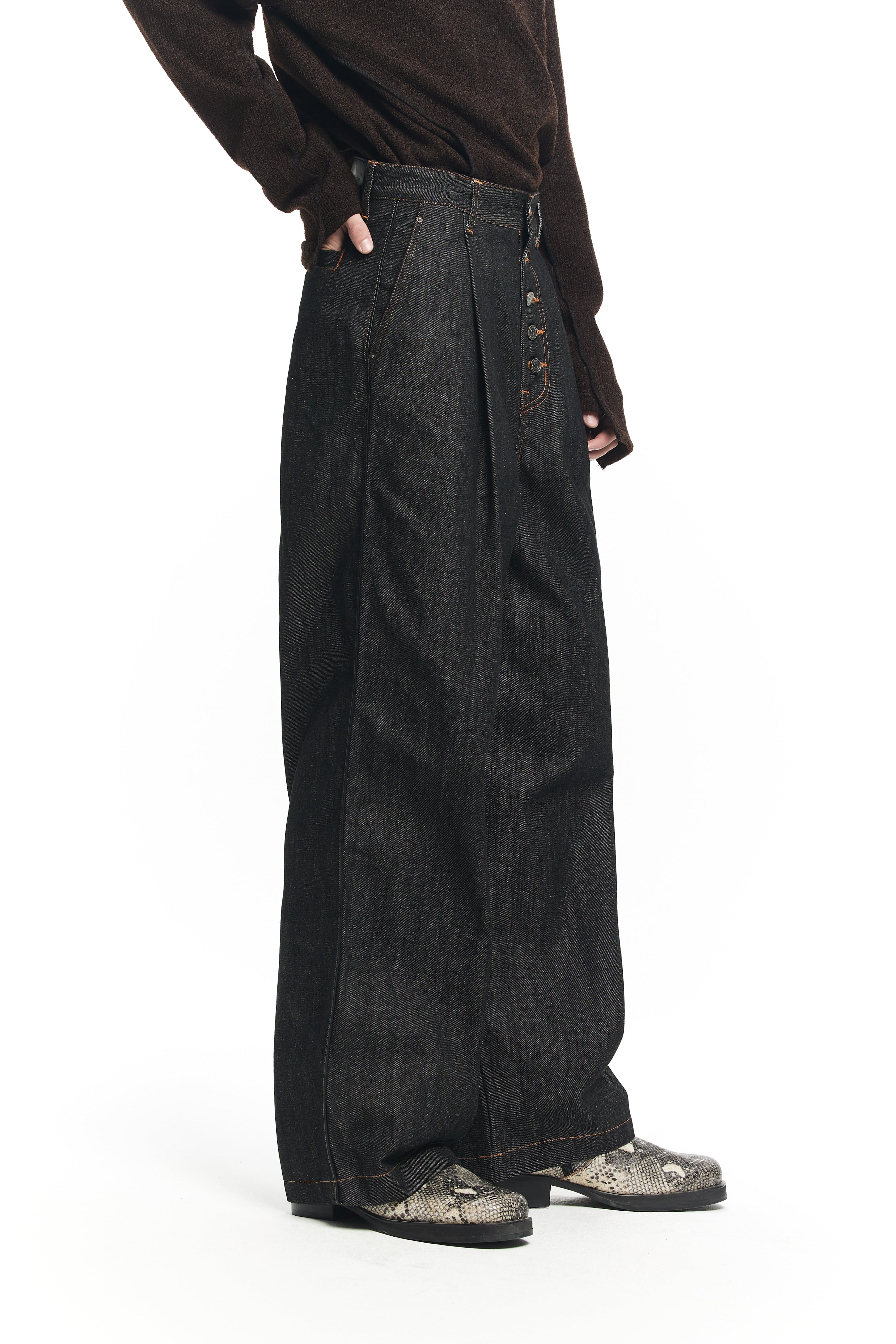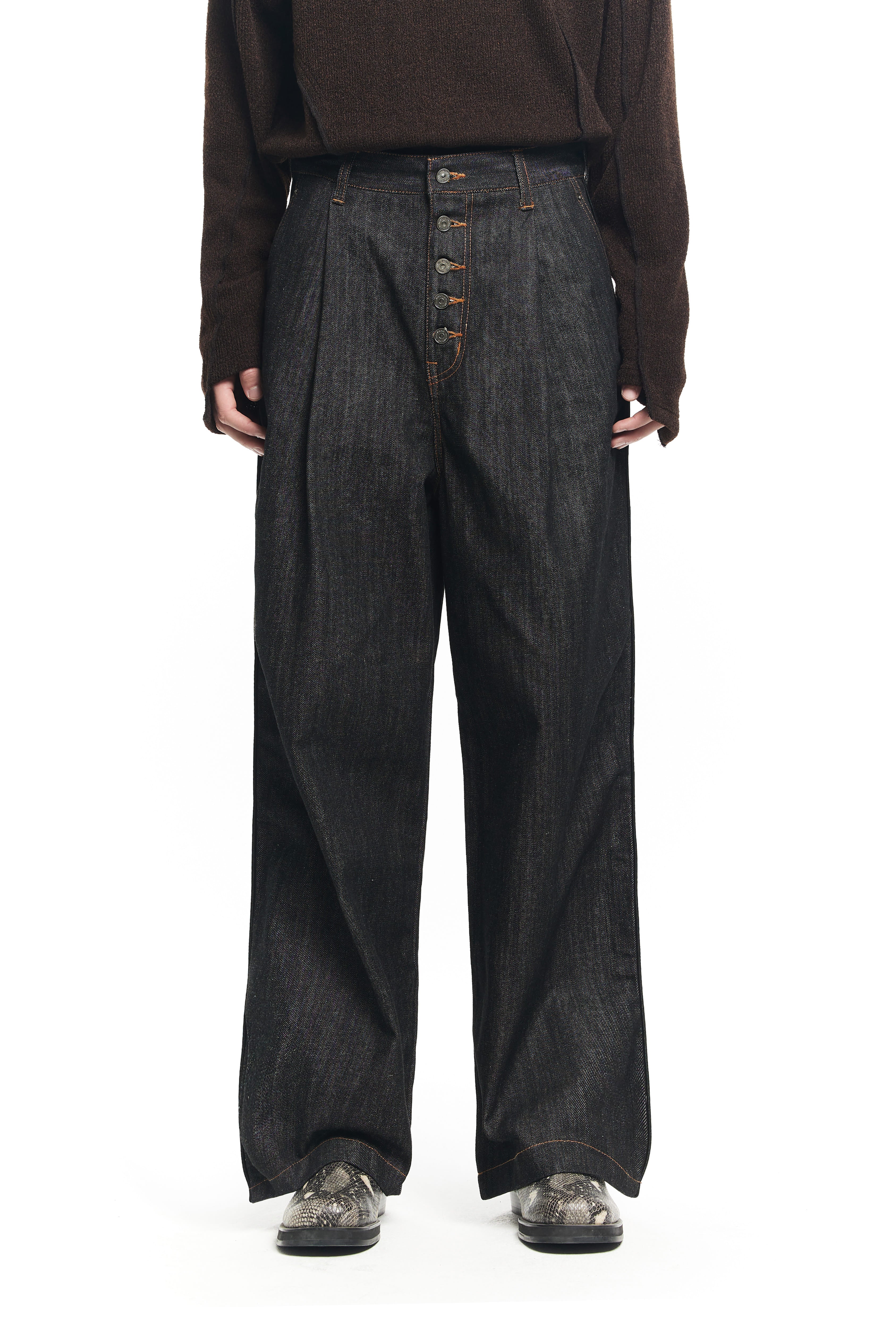 BUTTON FLY WIDE DENIM PANTS