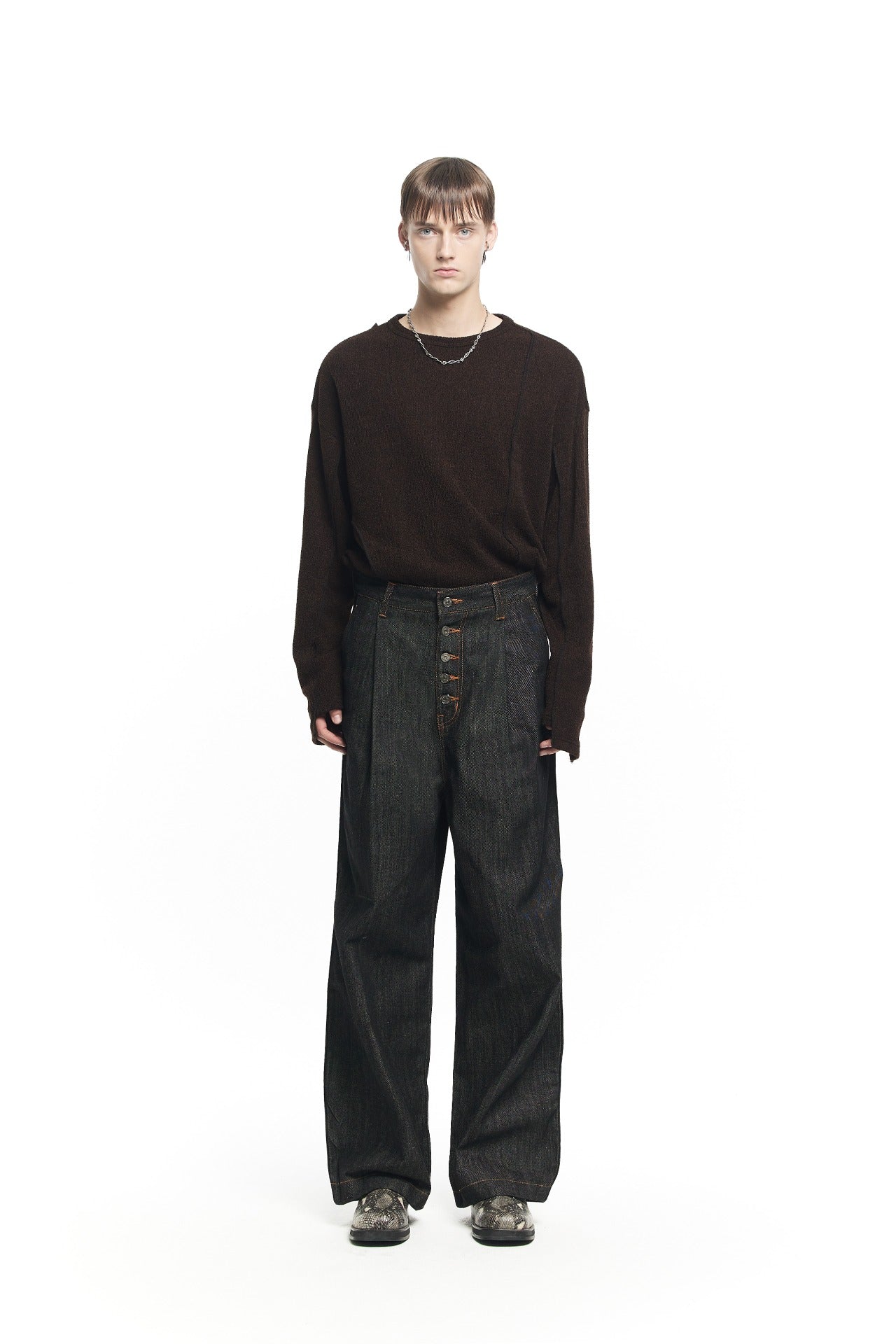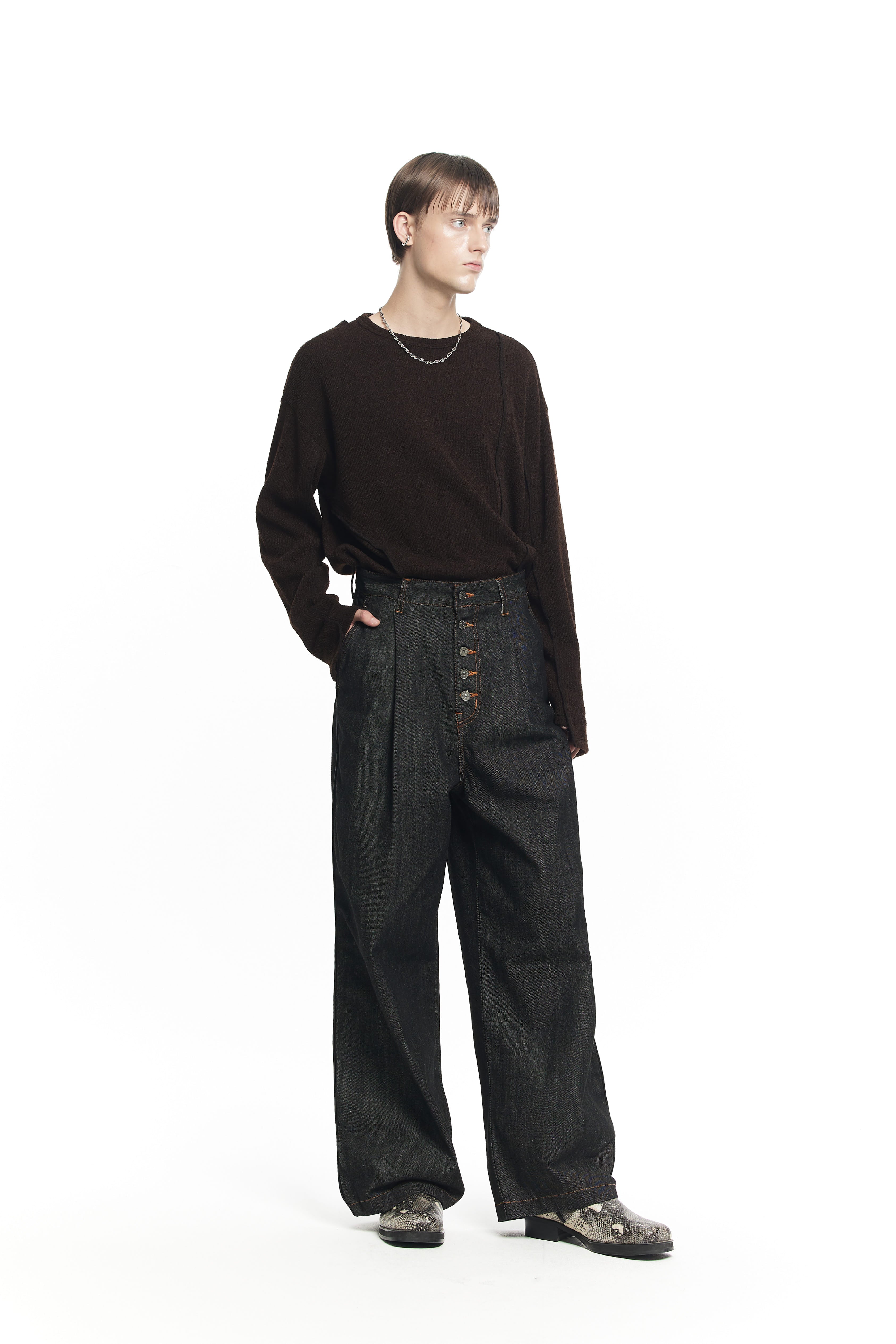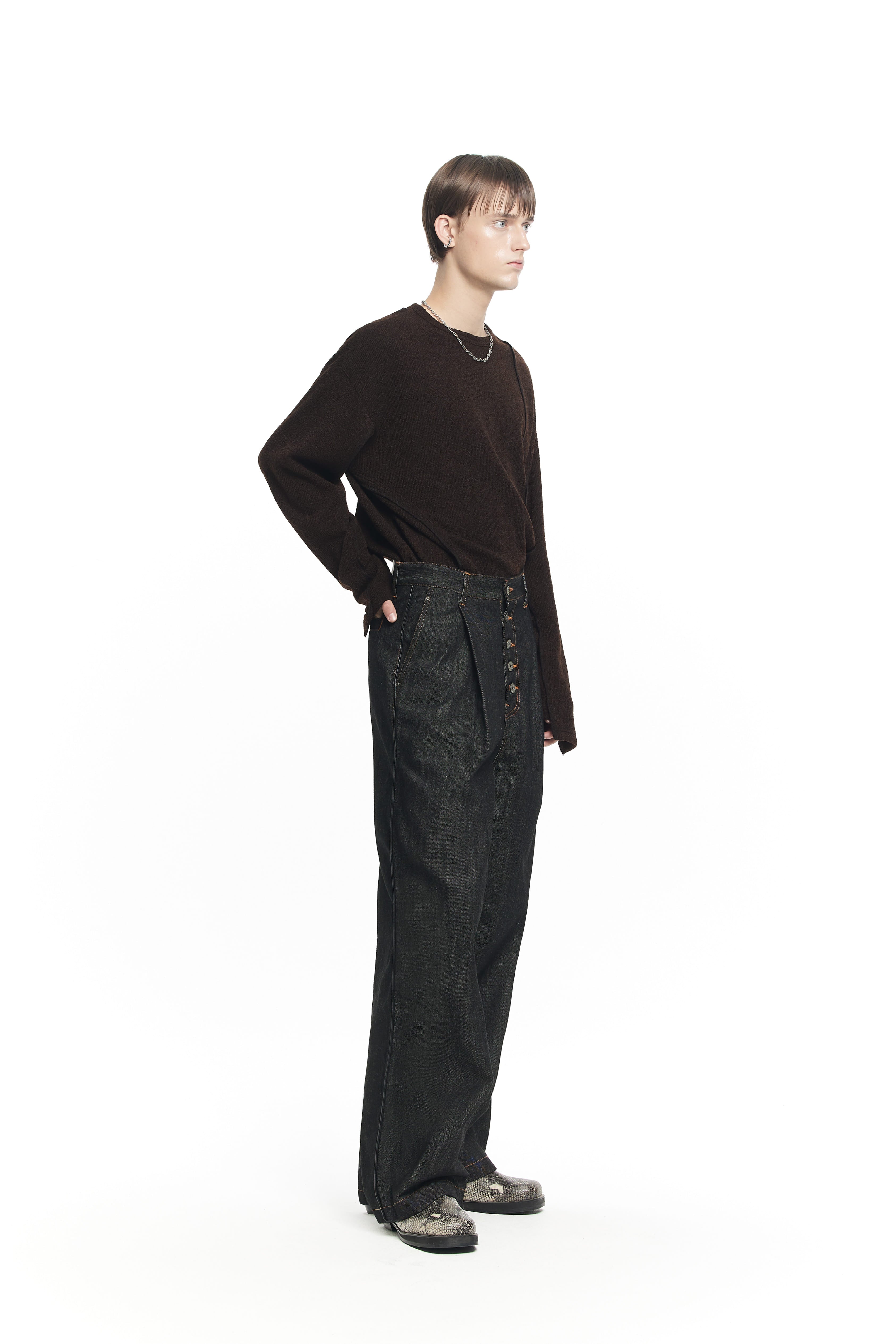BUTTON FLY WIDE DENIM PANTS