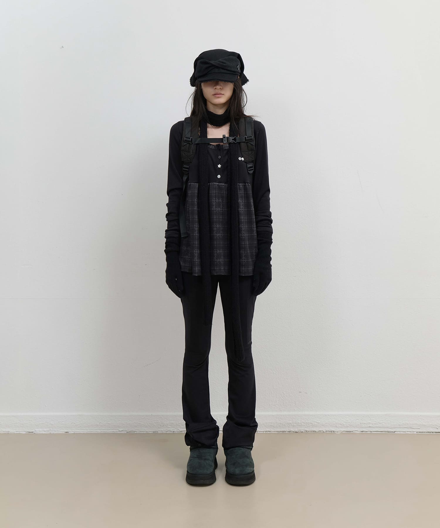 -1 SIZE (ウエスト62 ヒップ- 股上31 股下76 もも周り46 裾周り44 総丈107)