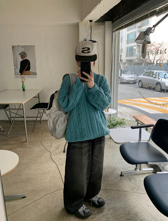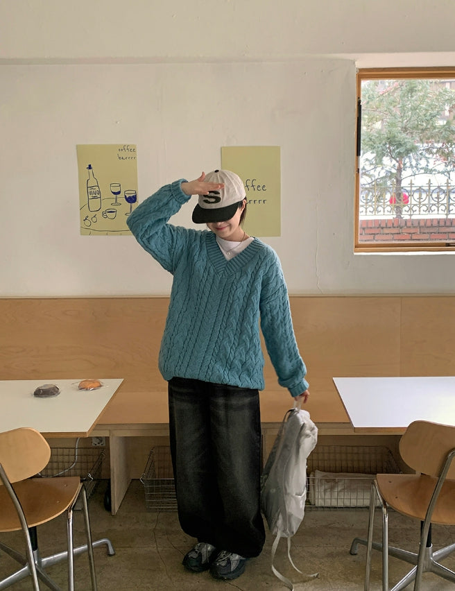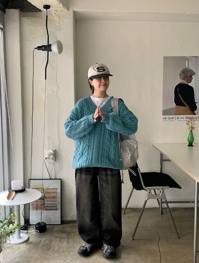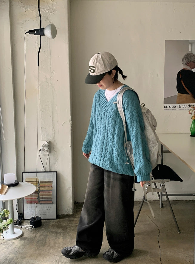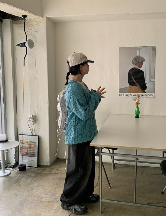 Catsy washed denim wide pants