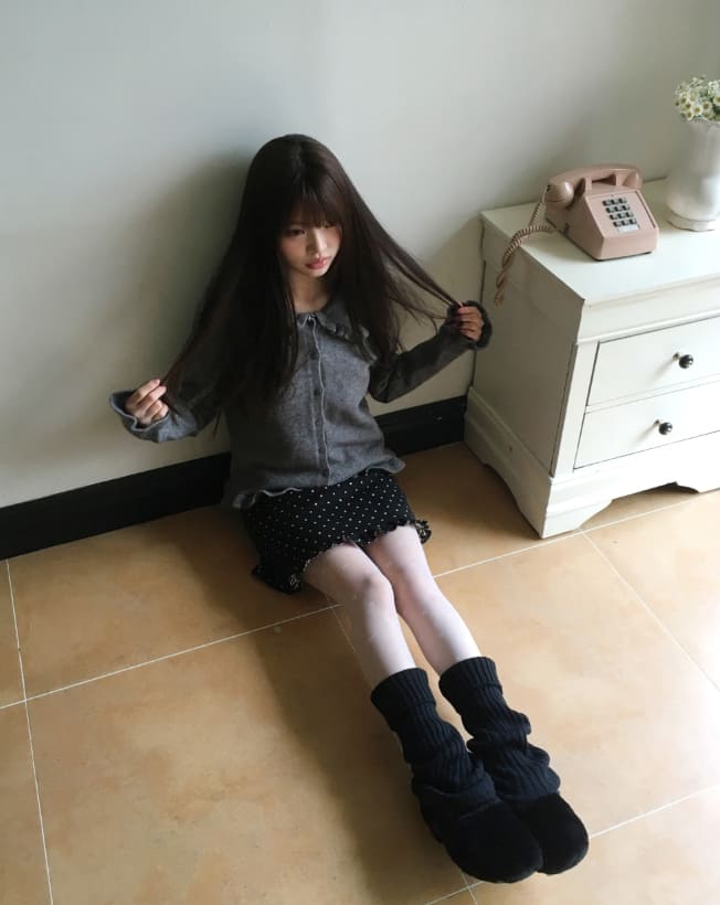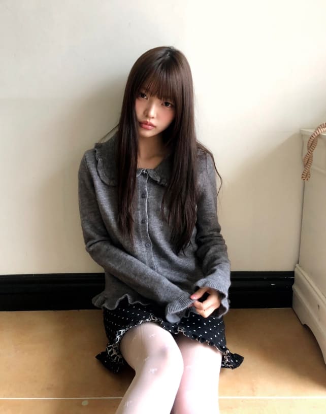 チョミンフリル襟付きニットカーディガン