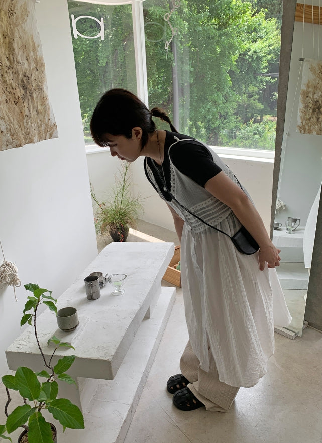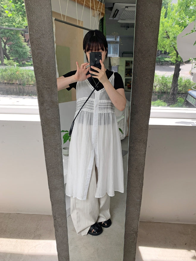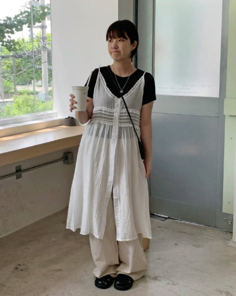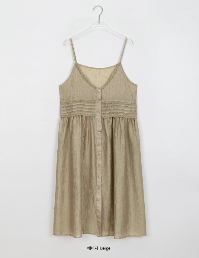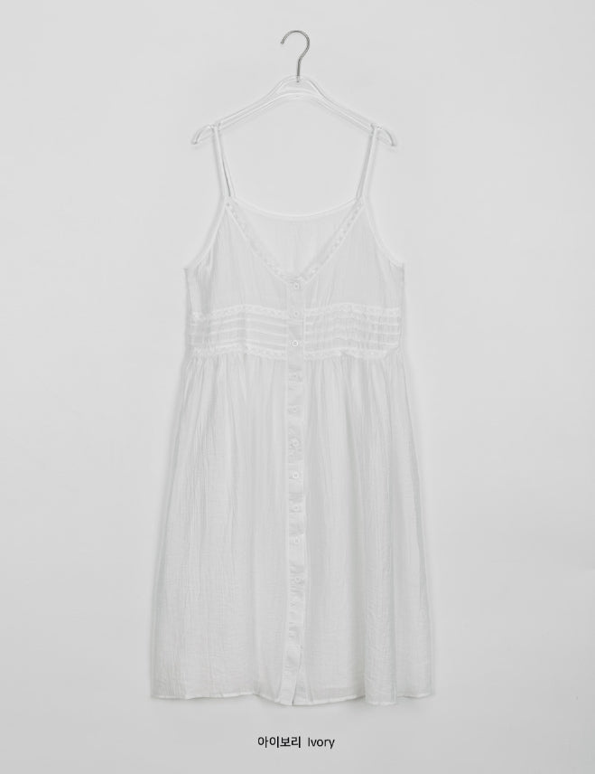 Chyuiko Pintuck Lace Layered Button Long One Piece
