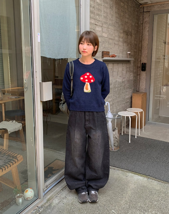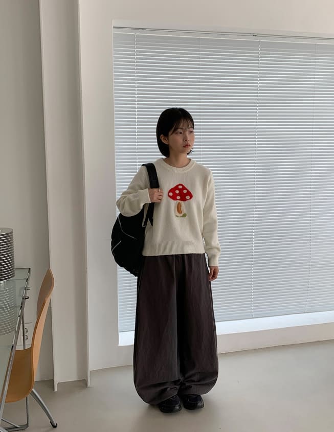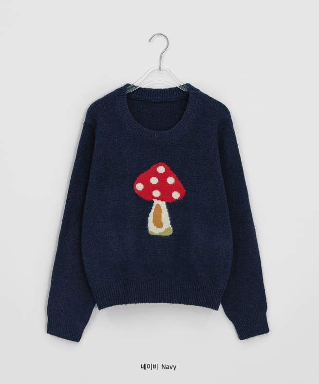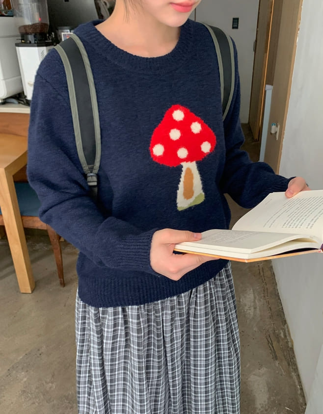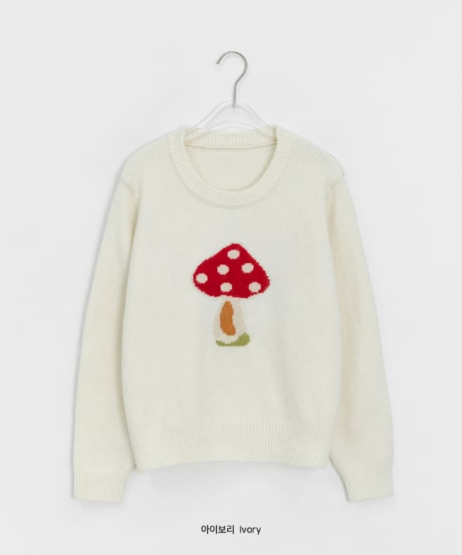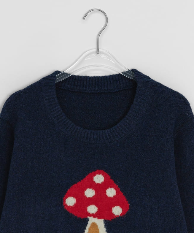 Colness Mushroom Print Wool Round Knit