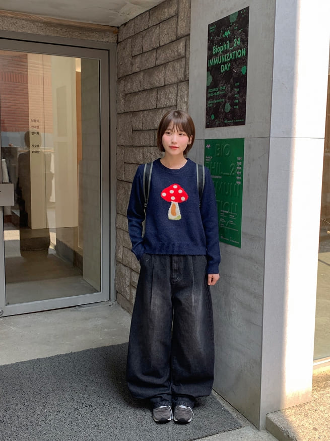 コルネスマッシュルームプリントウールラウンドニット
