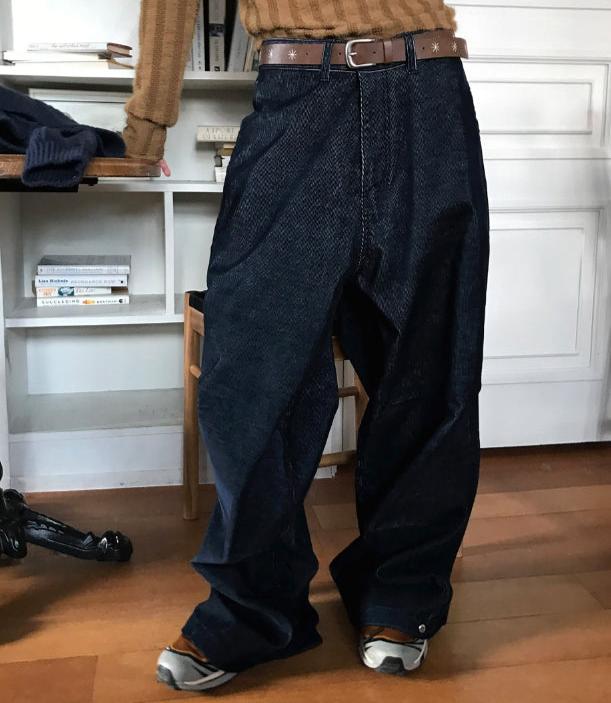 -S (ウエスト77 ヒップ121 股上38.5 股下71 もも周り79 裾周り58 総丈109.5)