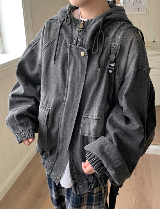 Corely Denim Two-Way Pocket Hood Over Jacket