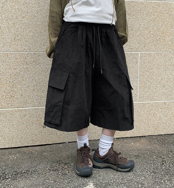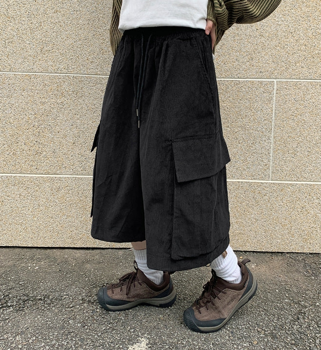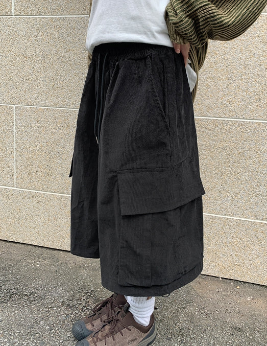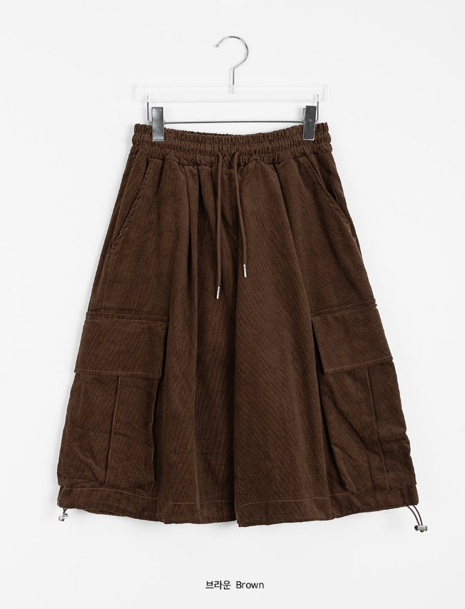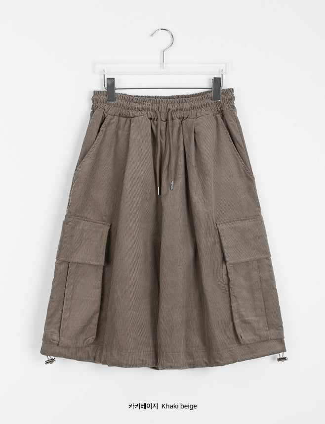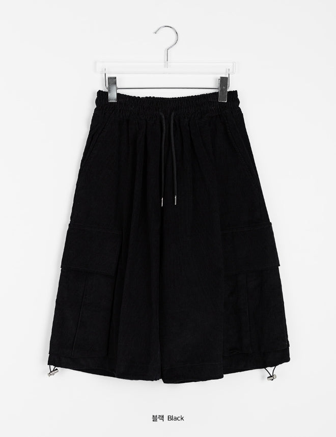 Corody Banding String Corduroy Cargo Bermuda Pants