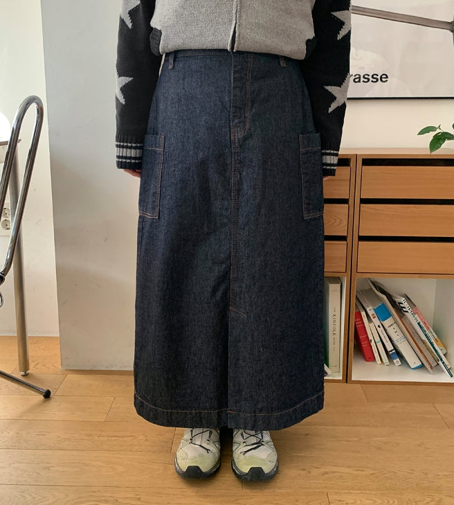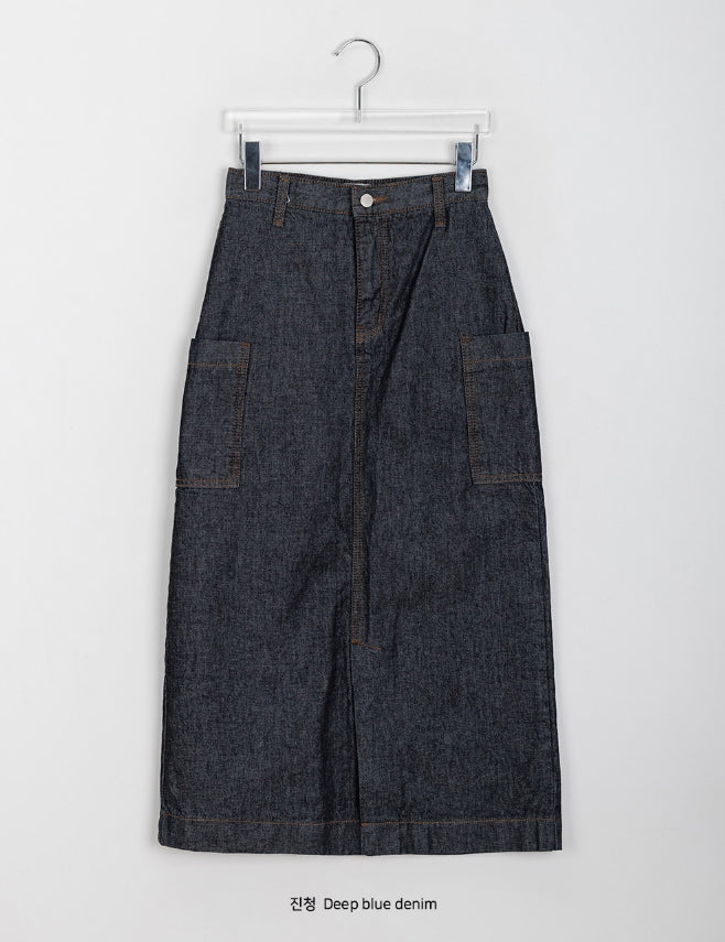 Cotiva Raw Denim Cargo Long Skirt