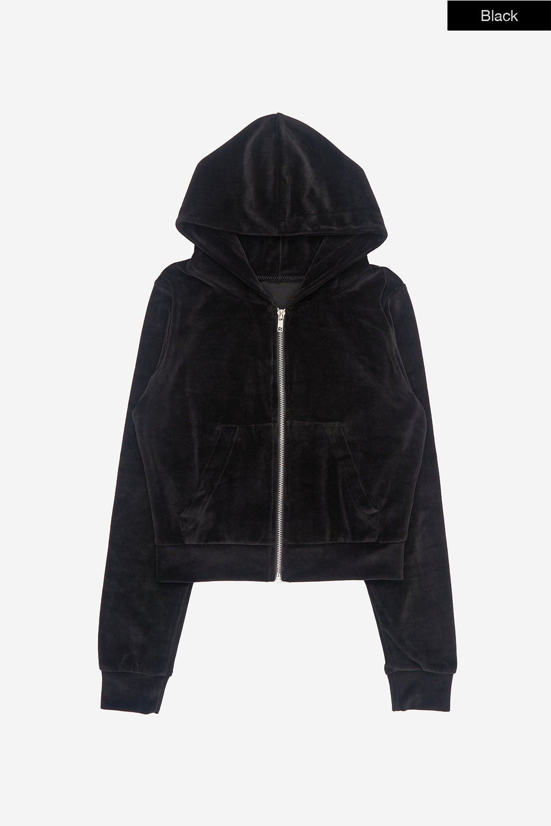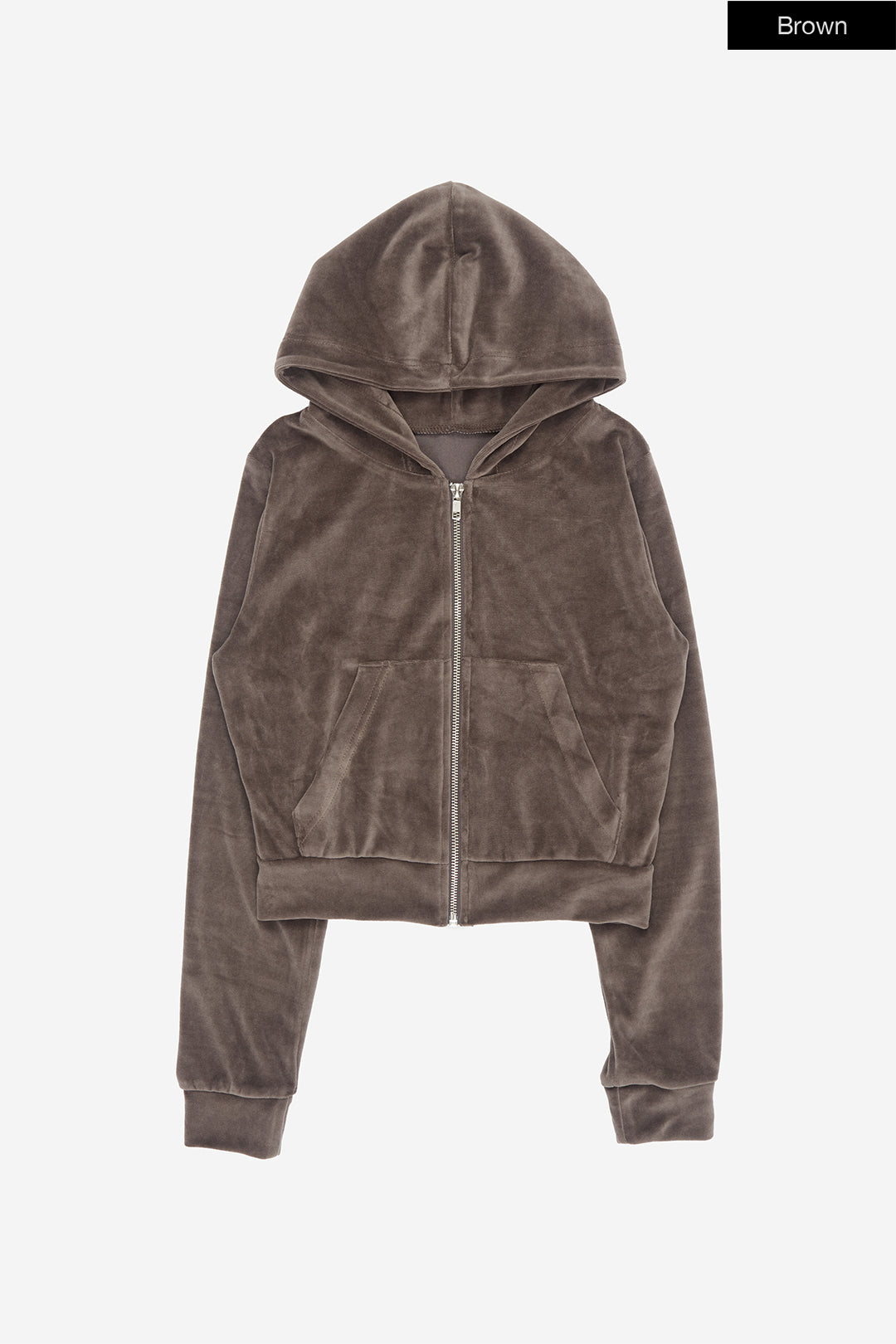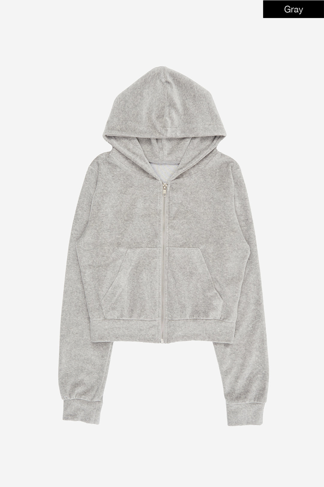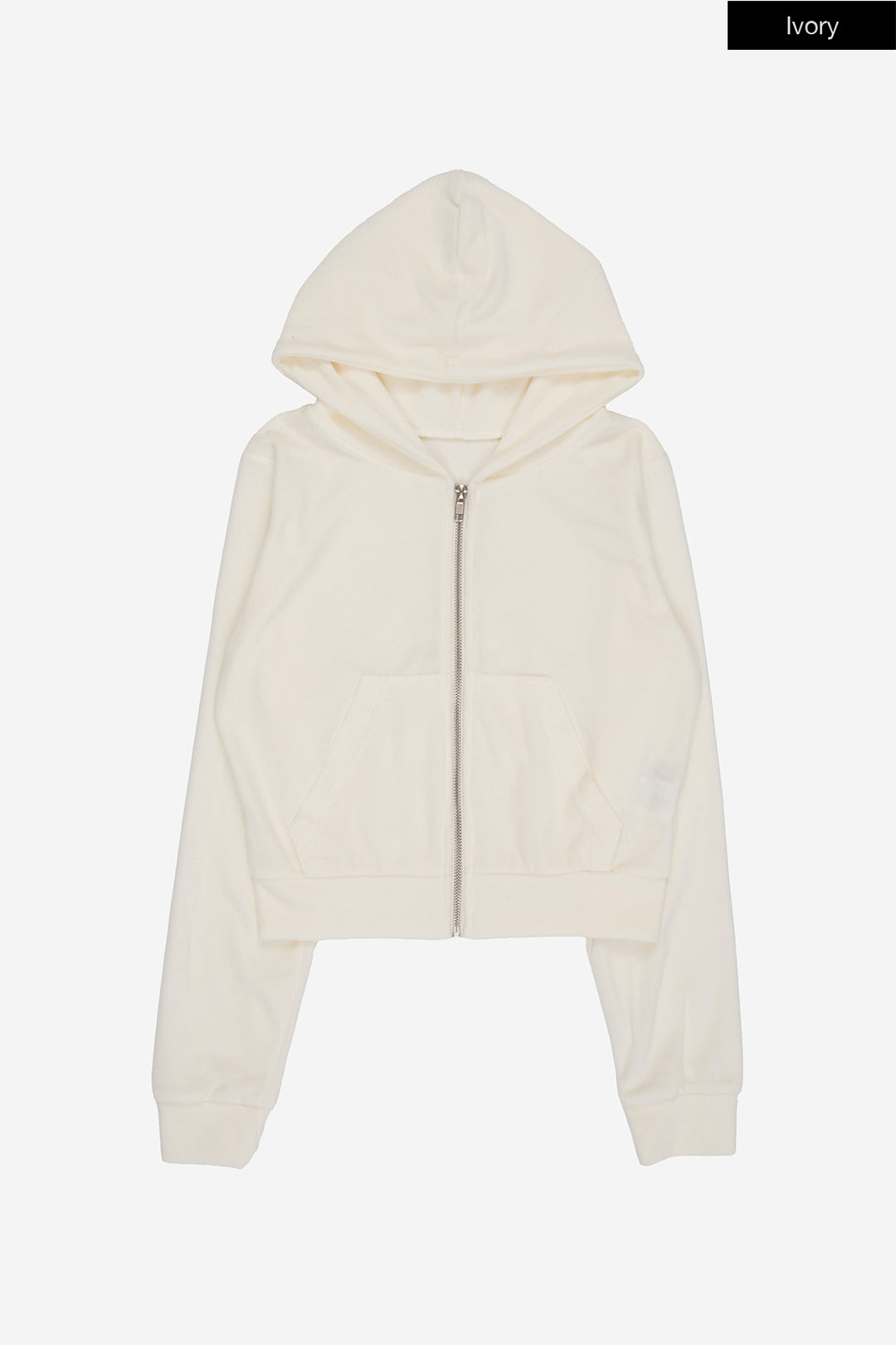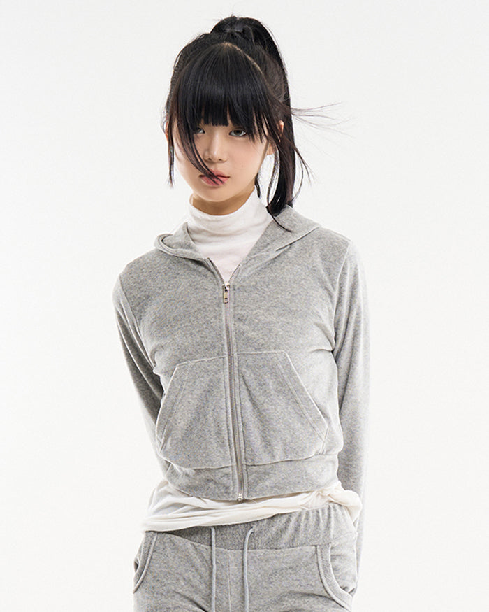 Cozy velour slim crop hood zip-up