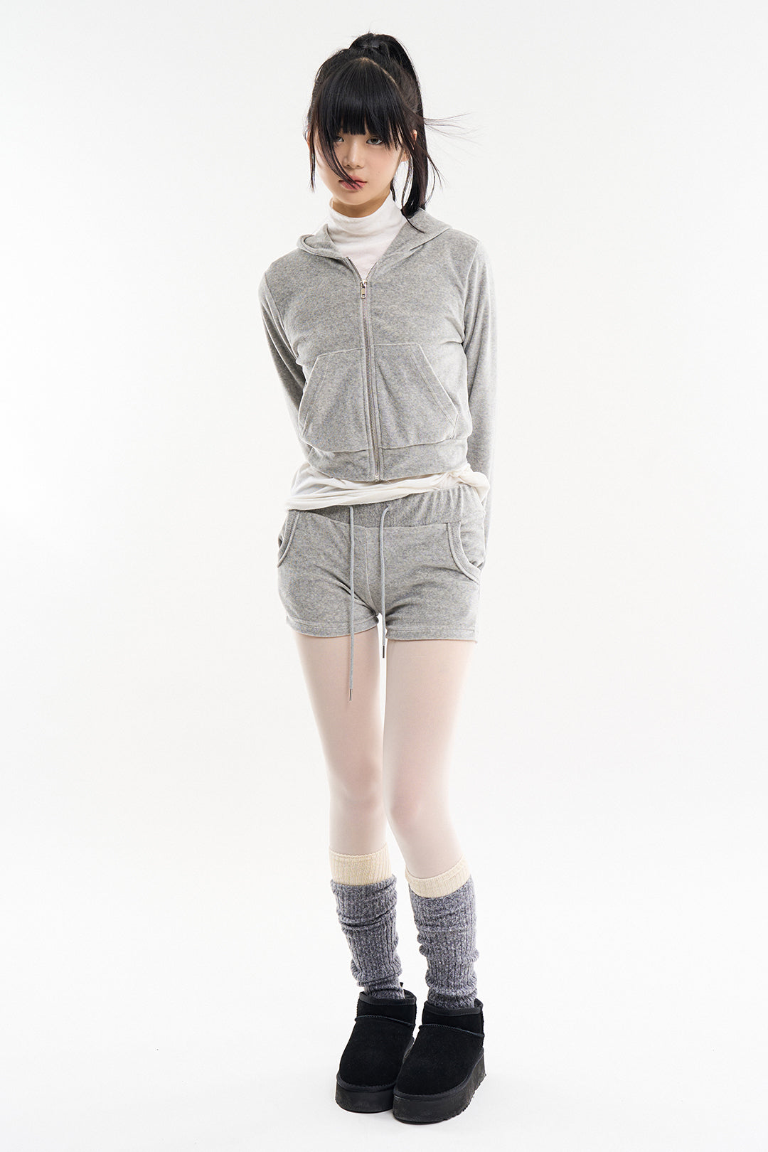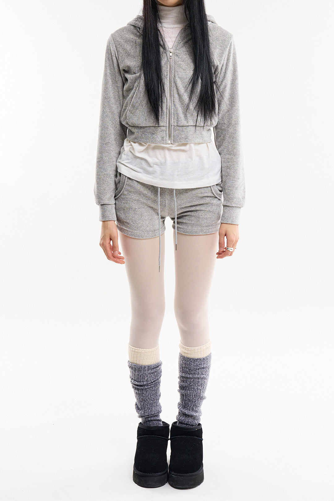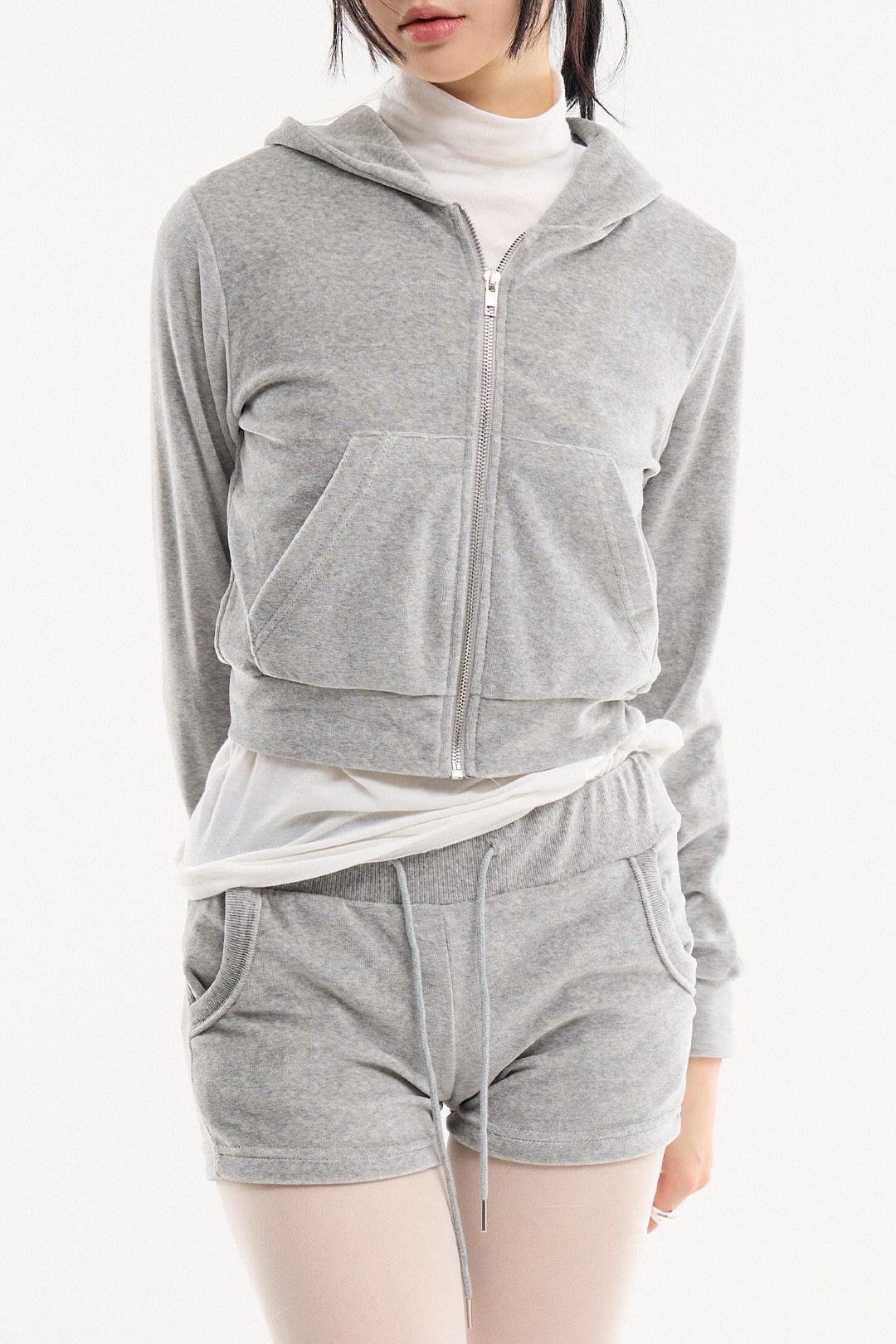コージーベロアスリムクロップドフードジップアップ