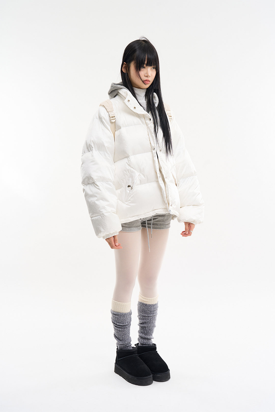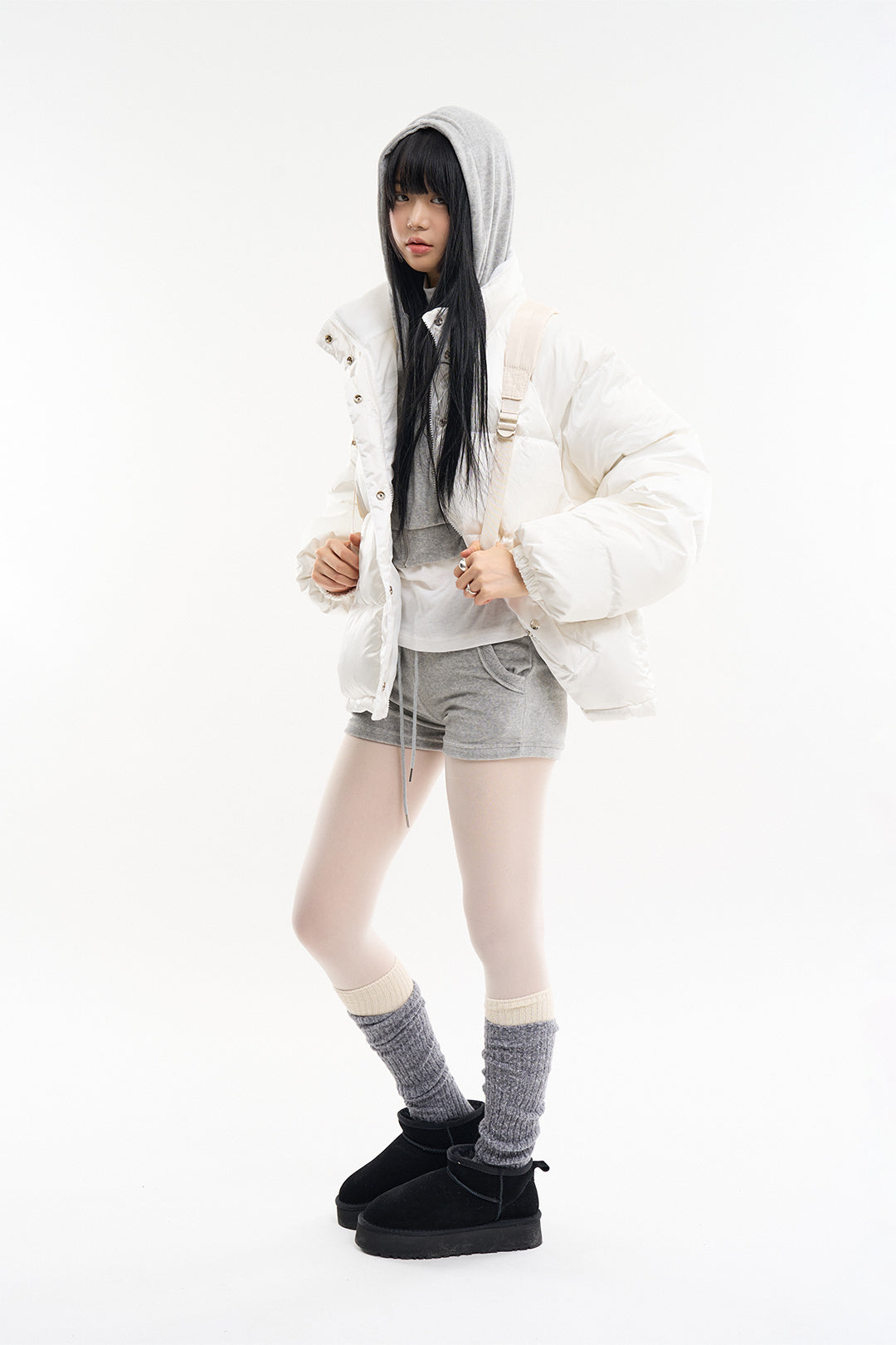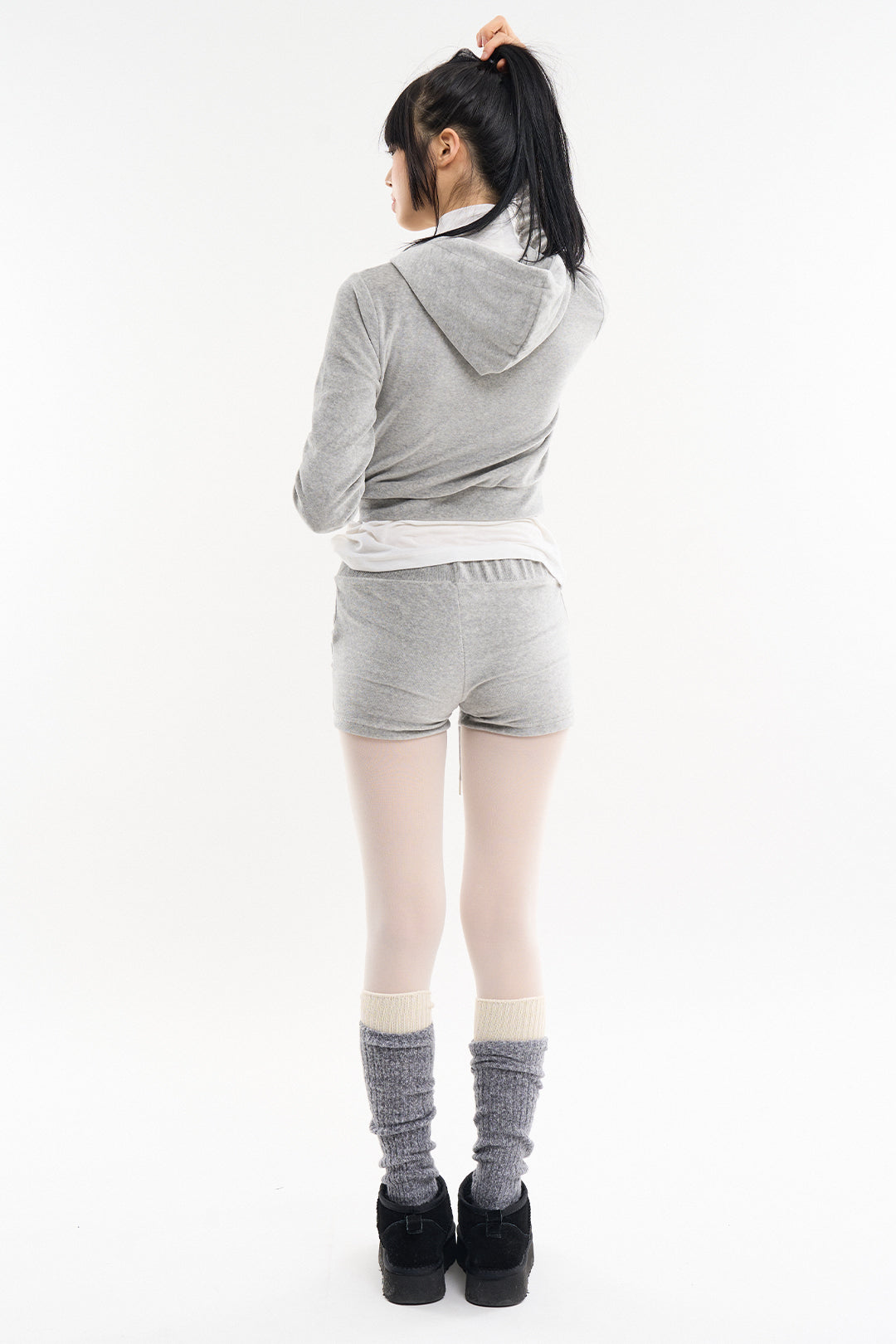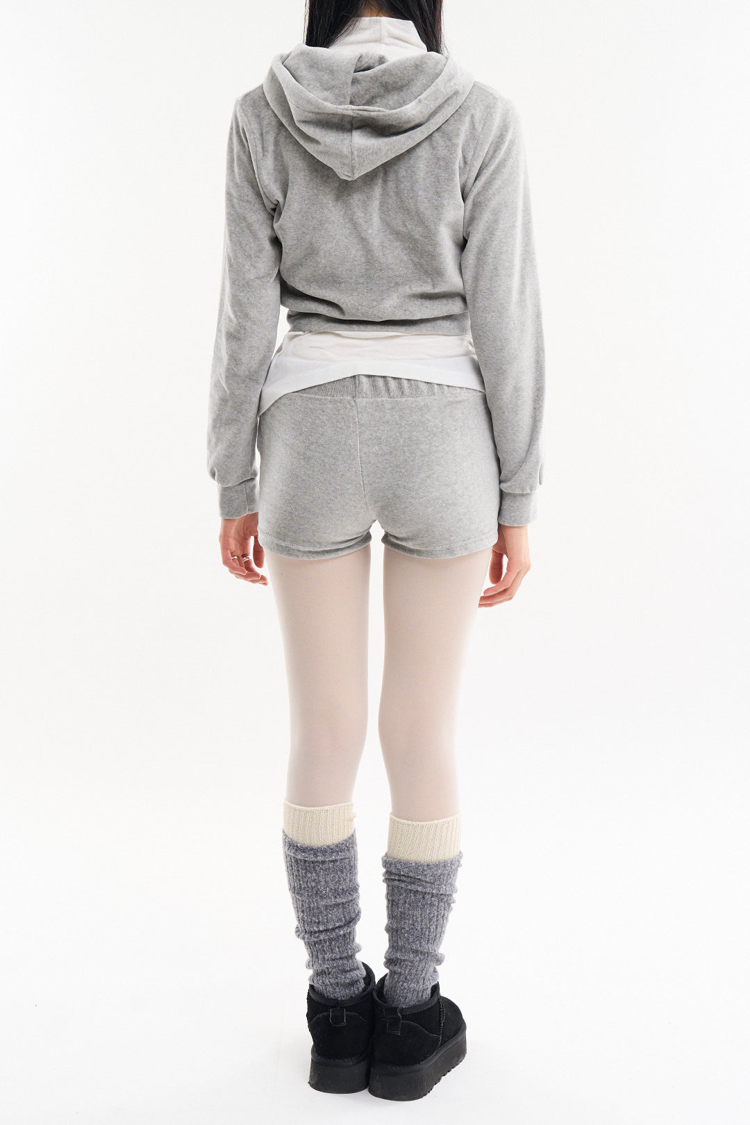 コージーベロアスリムクロップドフードジップアップ
