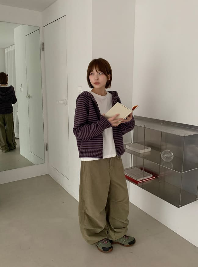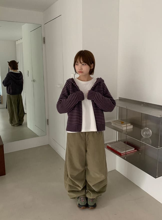 ダルモンピーチ起毛パラシュートコットンワイドパンツ