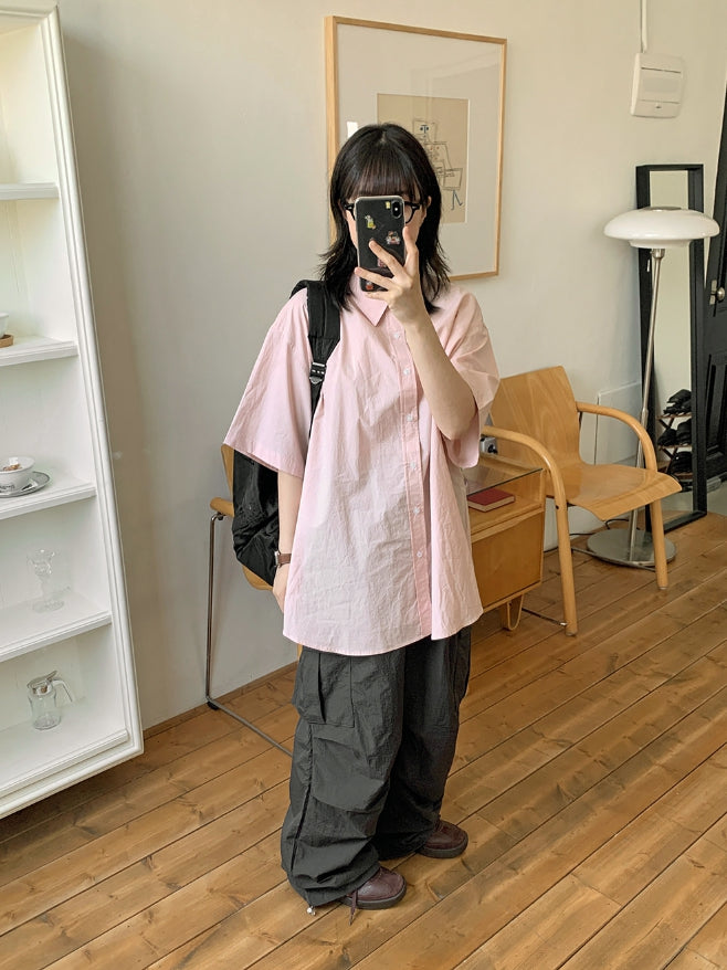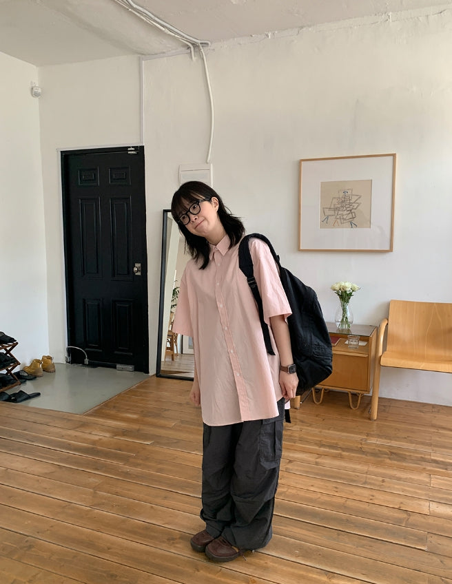 Deiku Basic Cotton Over Short Sleeve Shirt