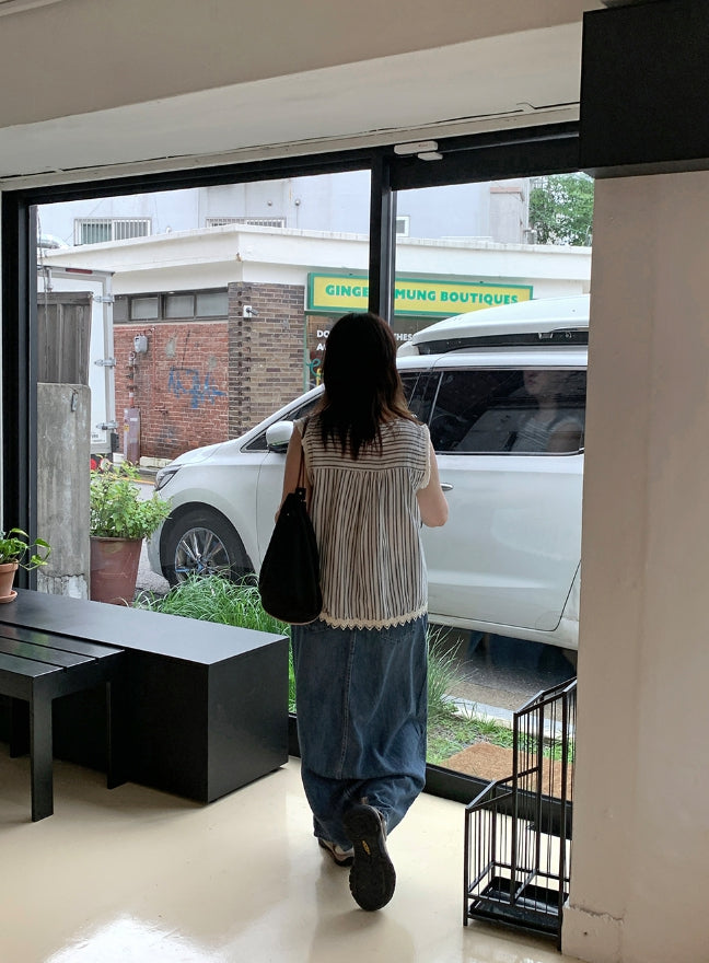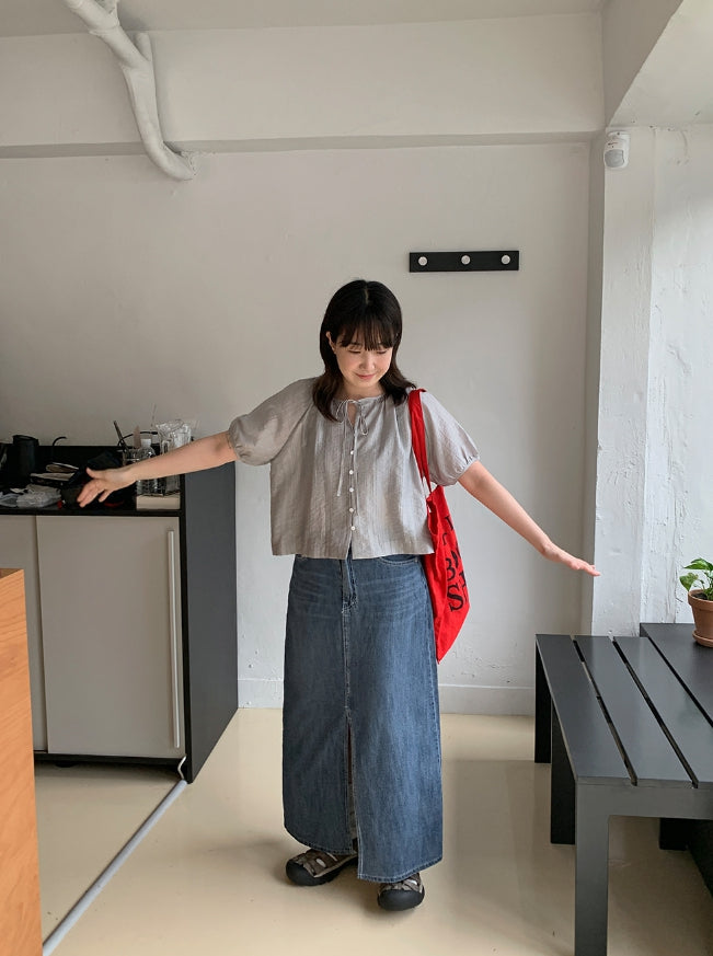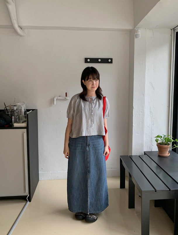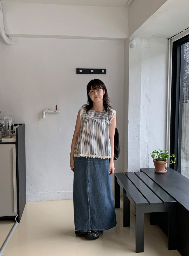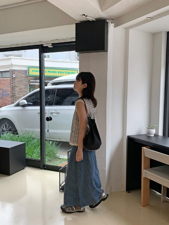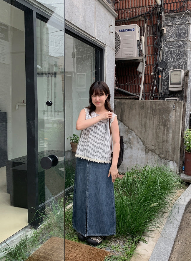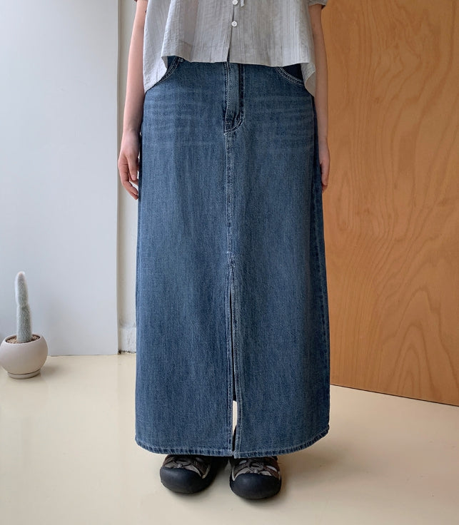 Delg Summer Slit Denim Long Skirt