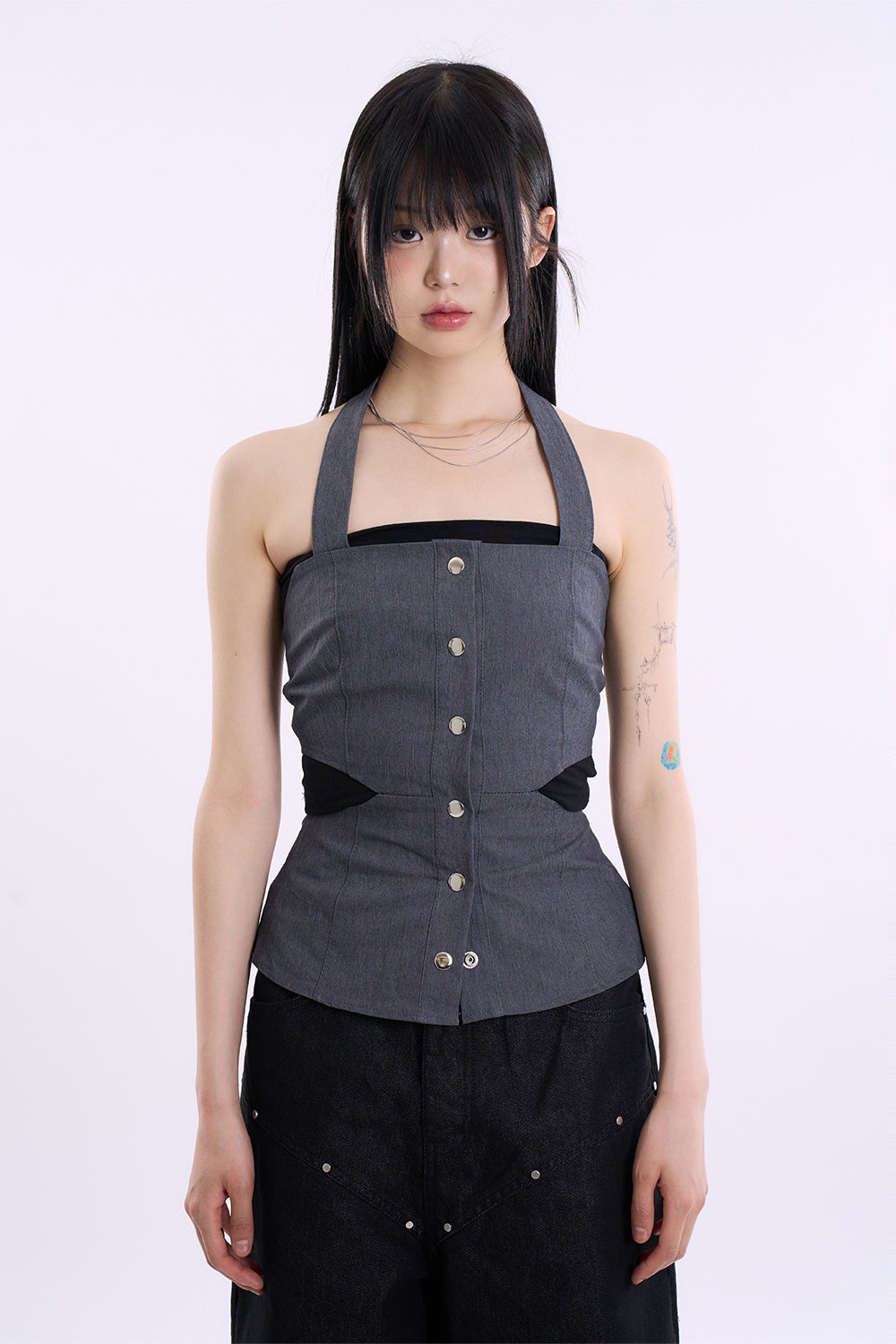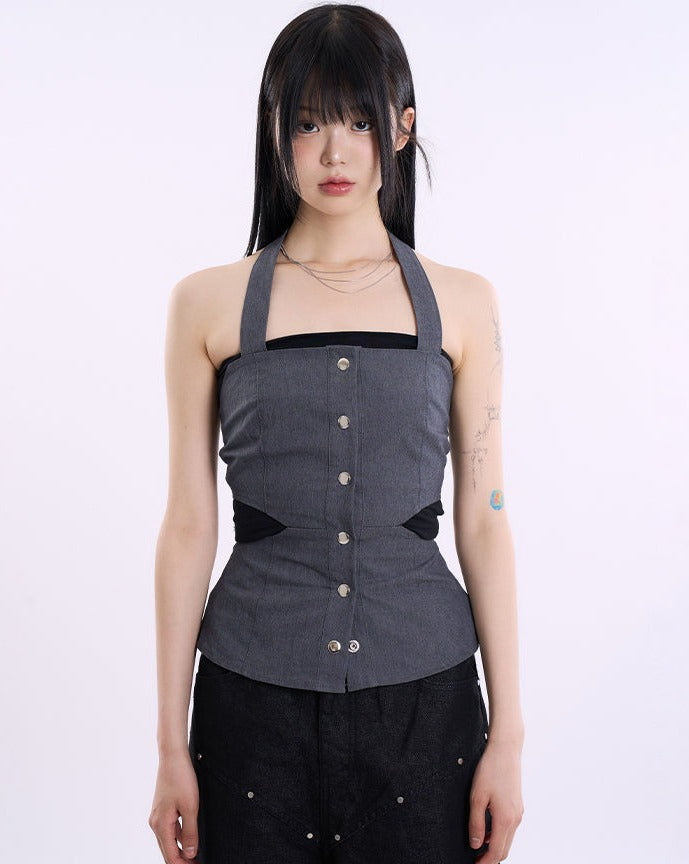 Denim snap cut out sleeveless top