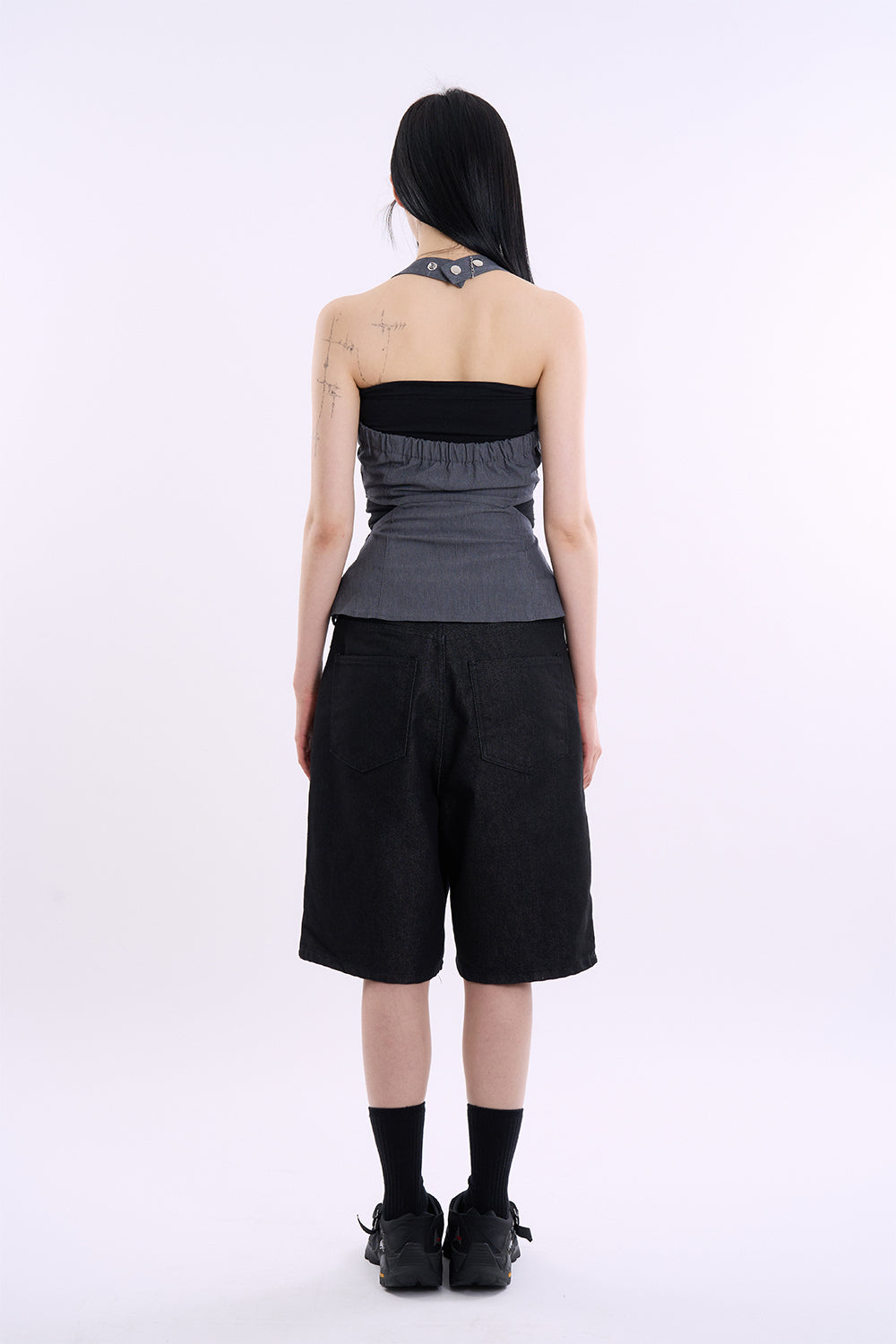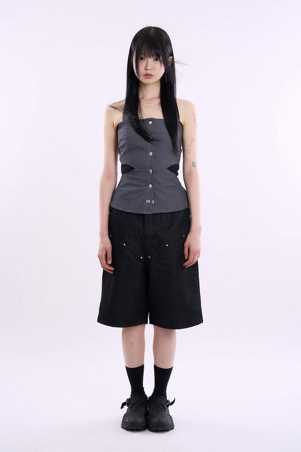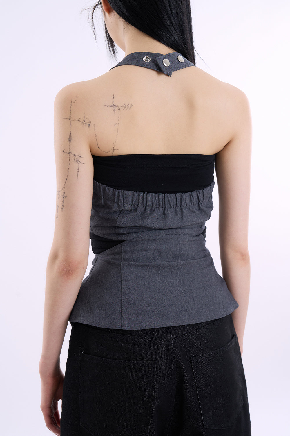 デニムスナップカットアウトスリーブレストップス