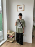 -ONE SIZE (ウエスト(ゴム)64-102 ヒップ118 股上33 股下68 もも周り66 裾周り30/62 総丈101)