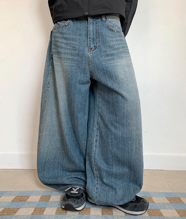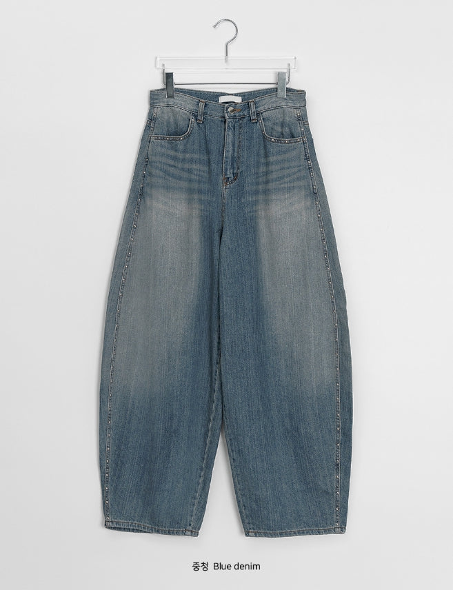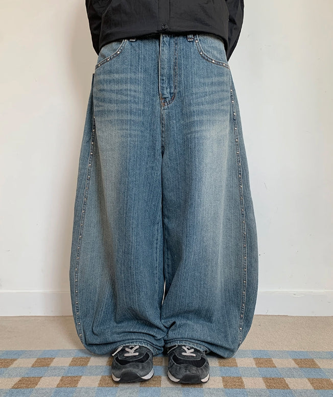 ディンテスタッドウォッシュ加工バルーンワイドデニムパンツ