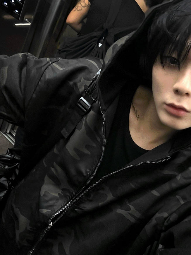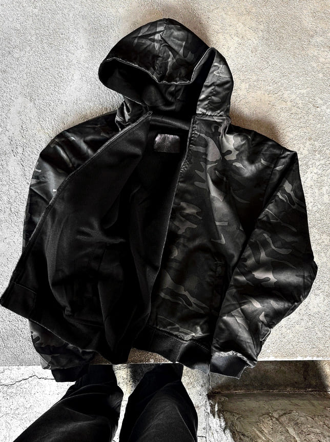 ダブルカモ&ディープブラックオーバーフィットフードジップアップ